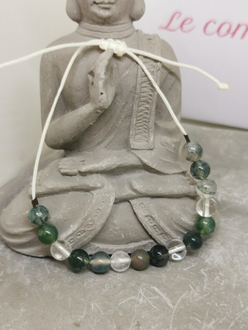 Monté sur un cordon ajustable noir ou blanc, ce bracelet s’adapte facilement à tous les poignets et offre un style à la fois naturel, discret et élégant. Les perles de 8 mm apportent une présence équilibrée, idéale pour un port quotidien.