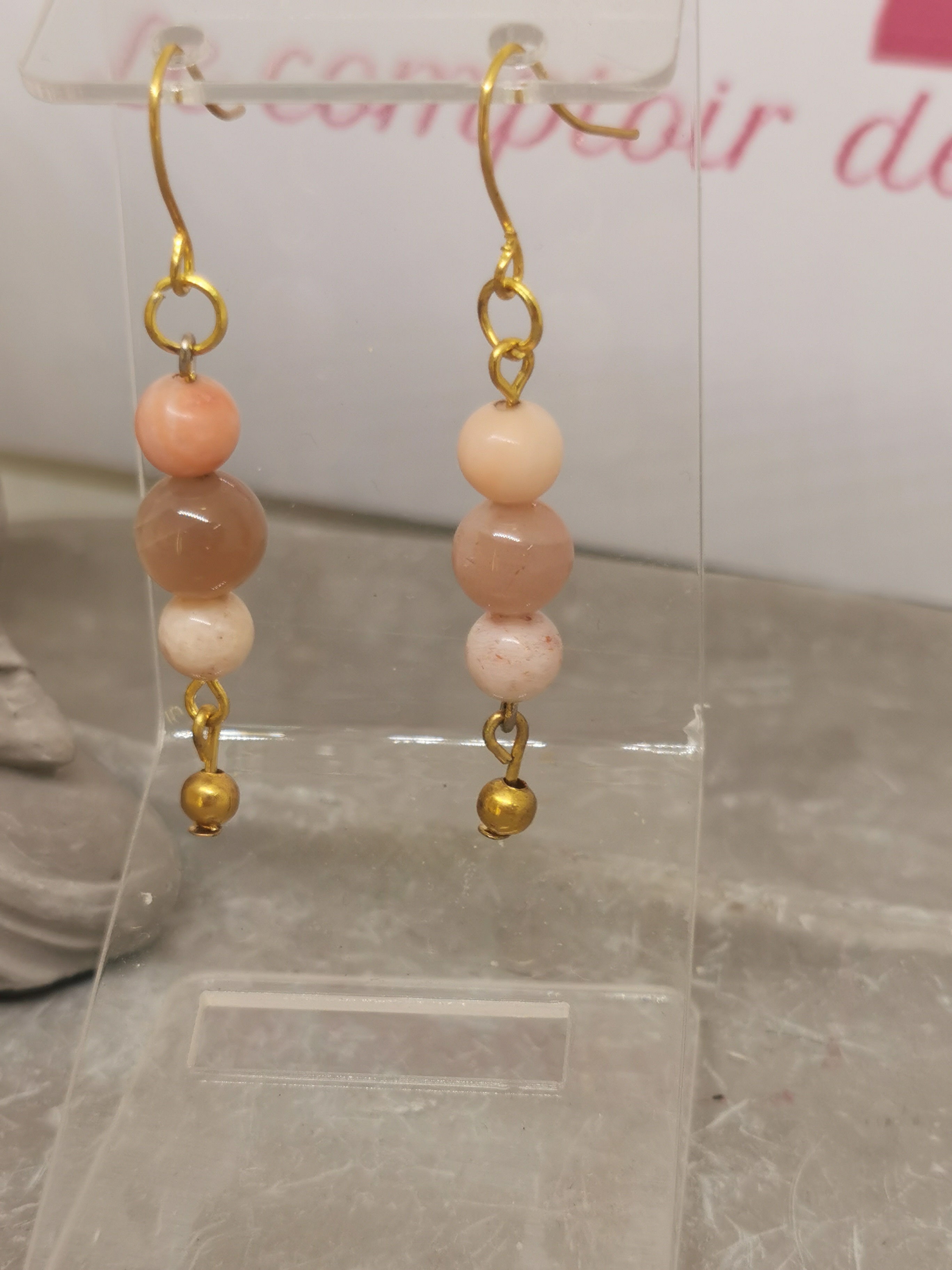 Pierres : Opale rose, Rhodonite, Pierre de lune rose