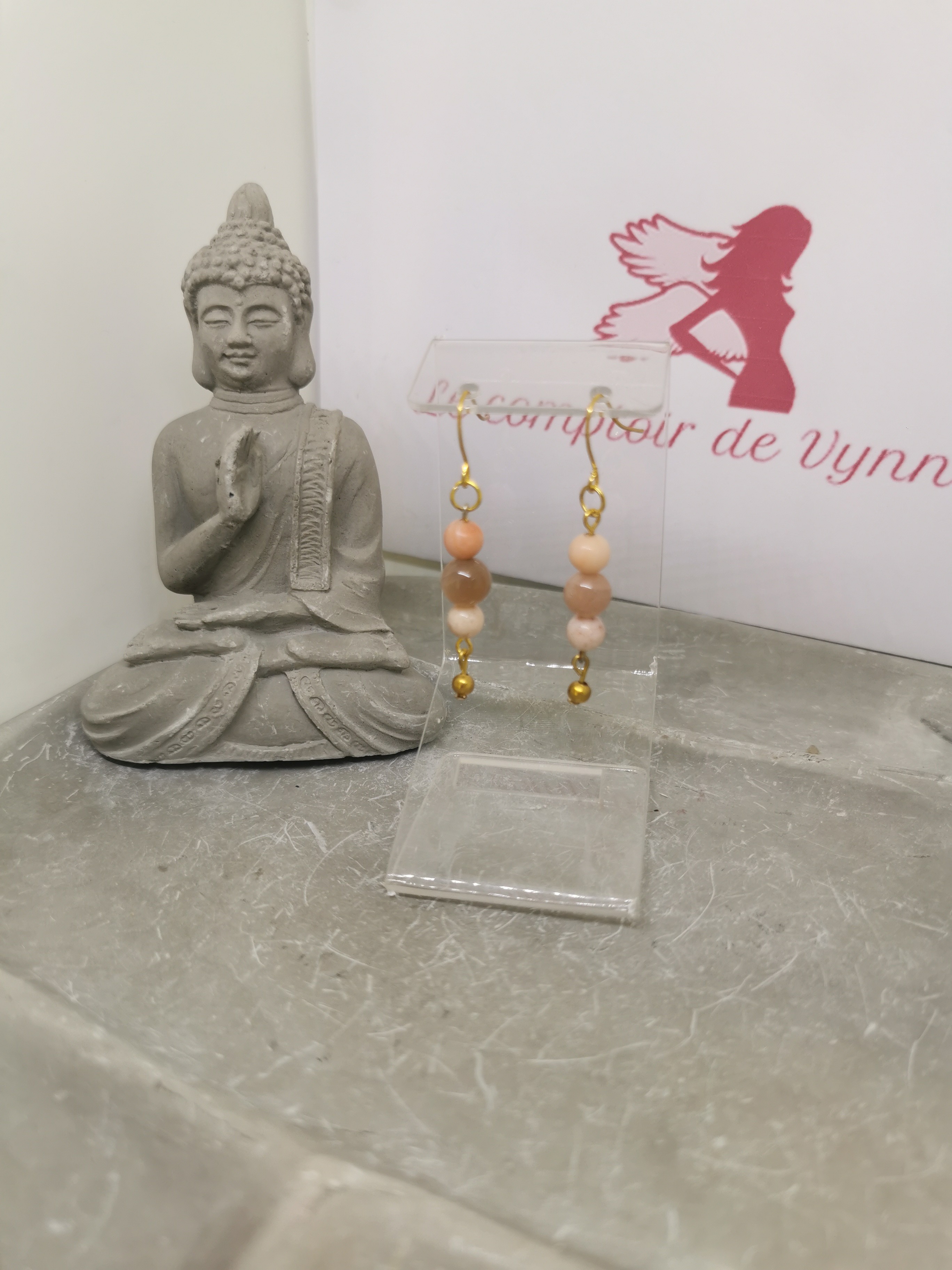 Montées sur câble doré avec fermoir crochet type hameçon, elles offrent un bijou léger, élégant et profondément symbolique. La petite perle dorée vient sublimer l’ensemble en apportant une touche lumineuse et raffinée.