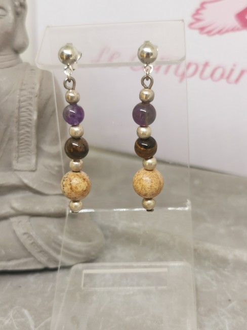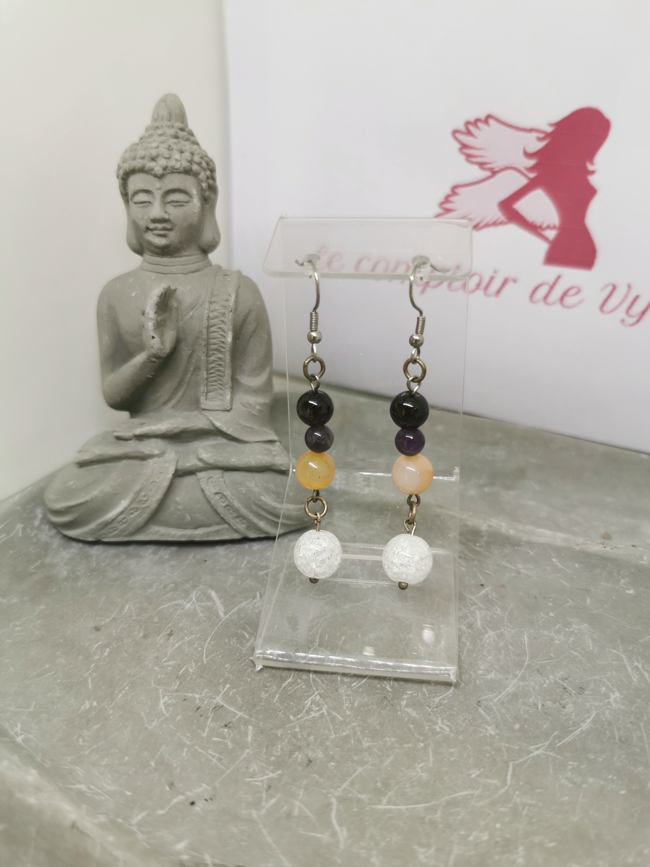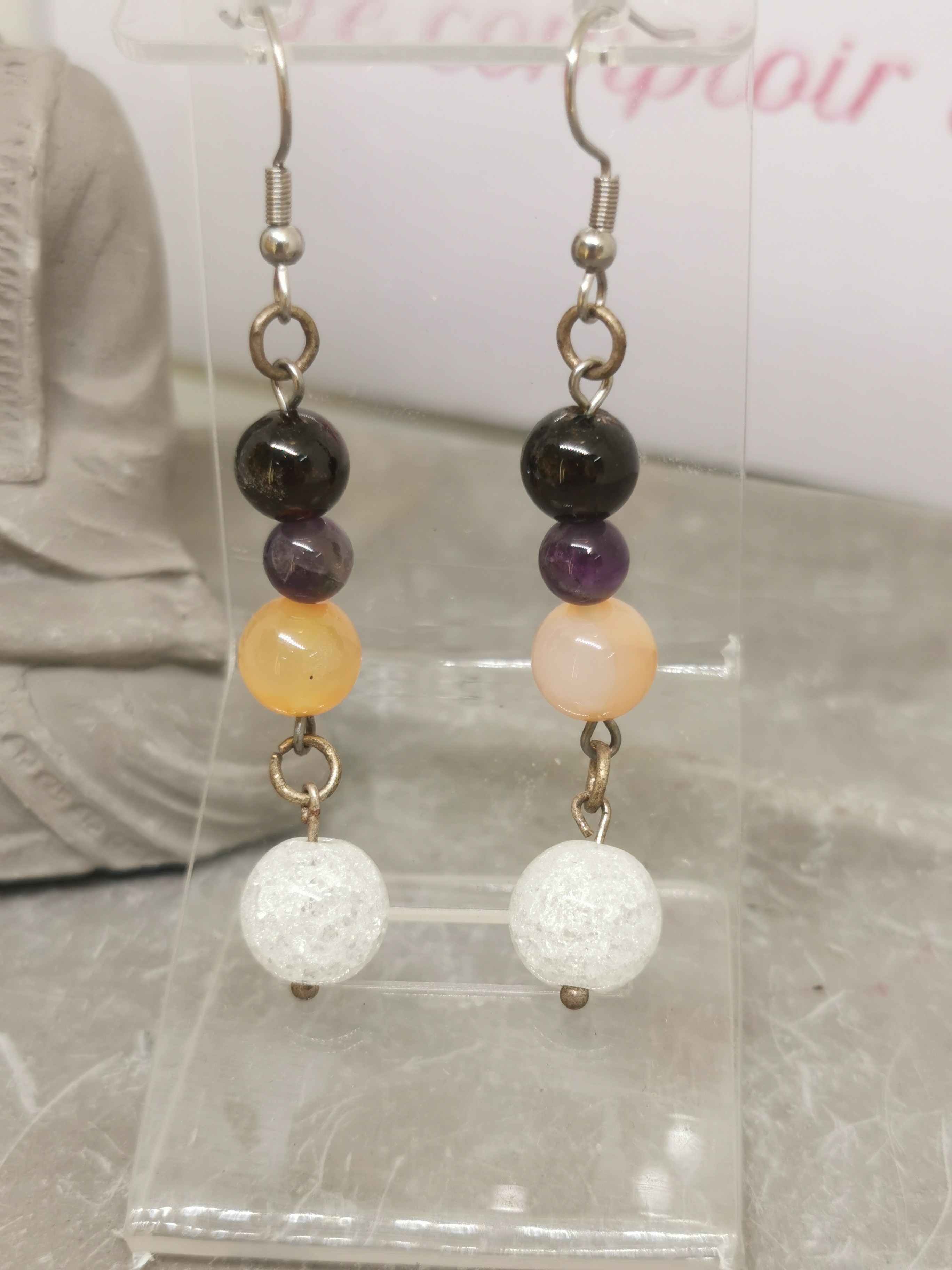 Boucles d’oreilles Améthyste, Cornaline, Grenat & Cristal de roche