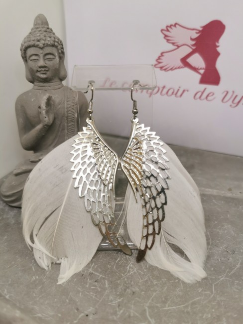 Montées sur chaînette argentée avec fermoir crochet type hameçon, ces boucles offrent un joli mouvement et un style à la fois élégant et symbolique.