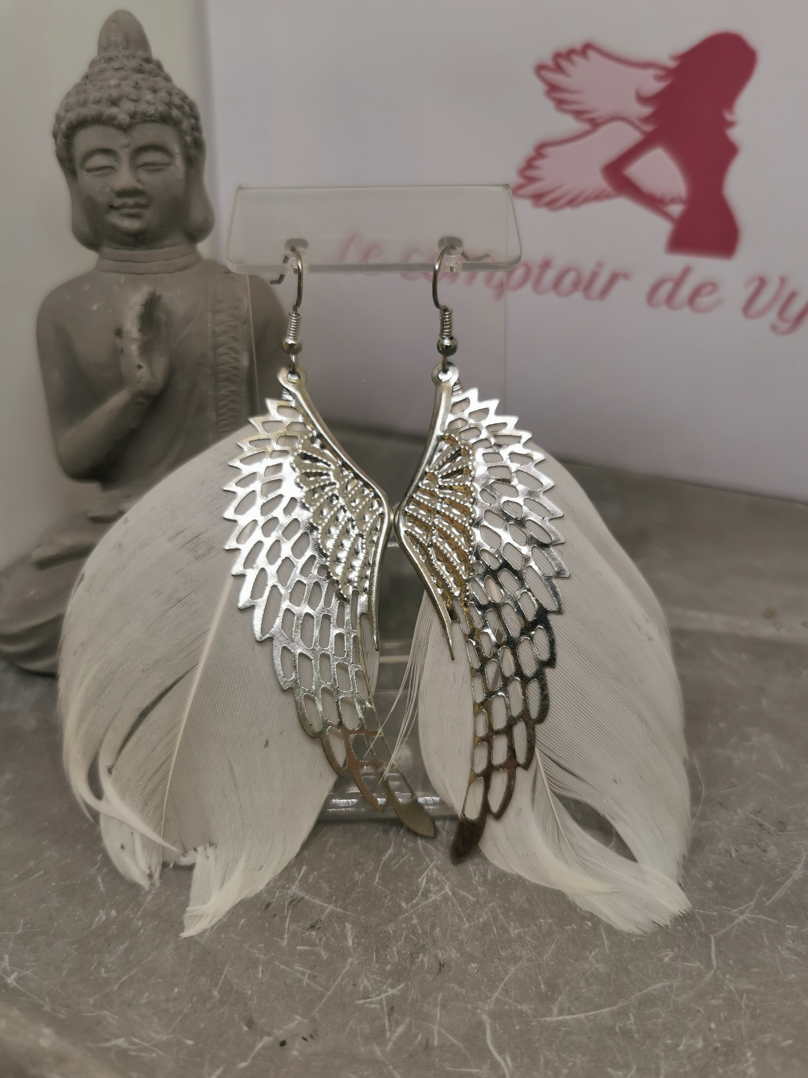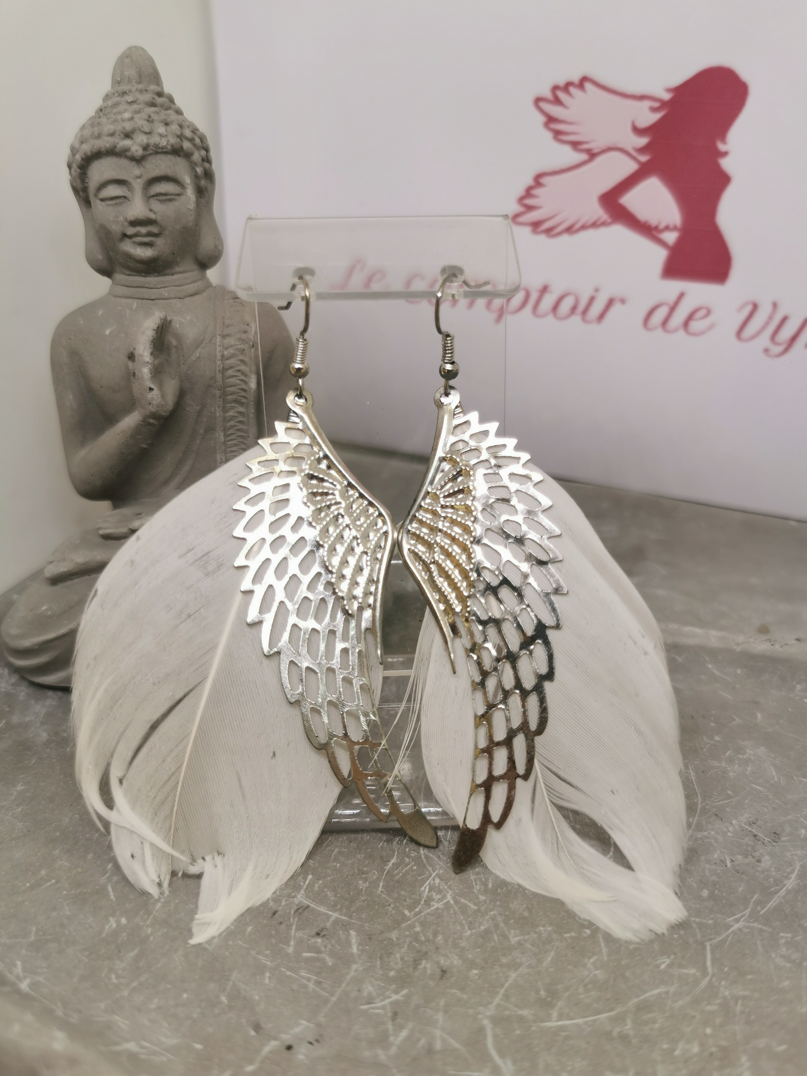Boucles d’oreilles Ailes d’Ange et plumes naturelles