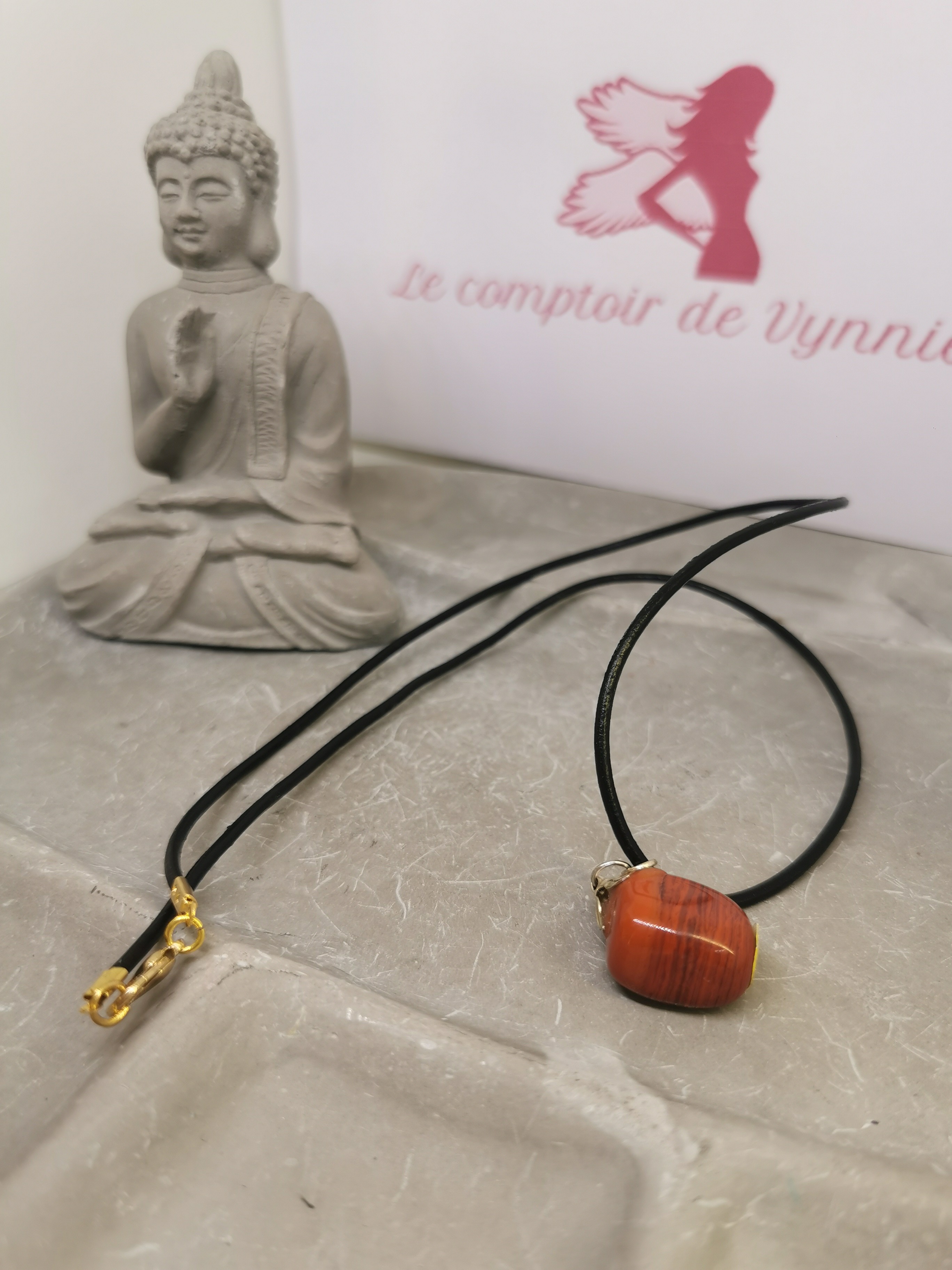 Le cordon noir symbolise la protection et met en valeur la pierre.