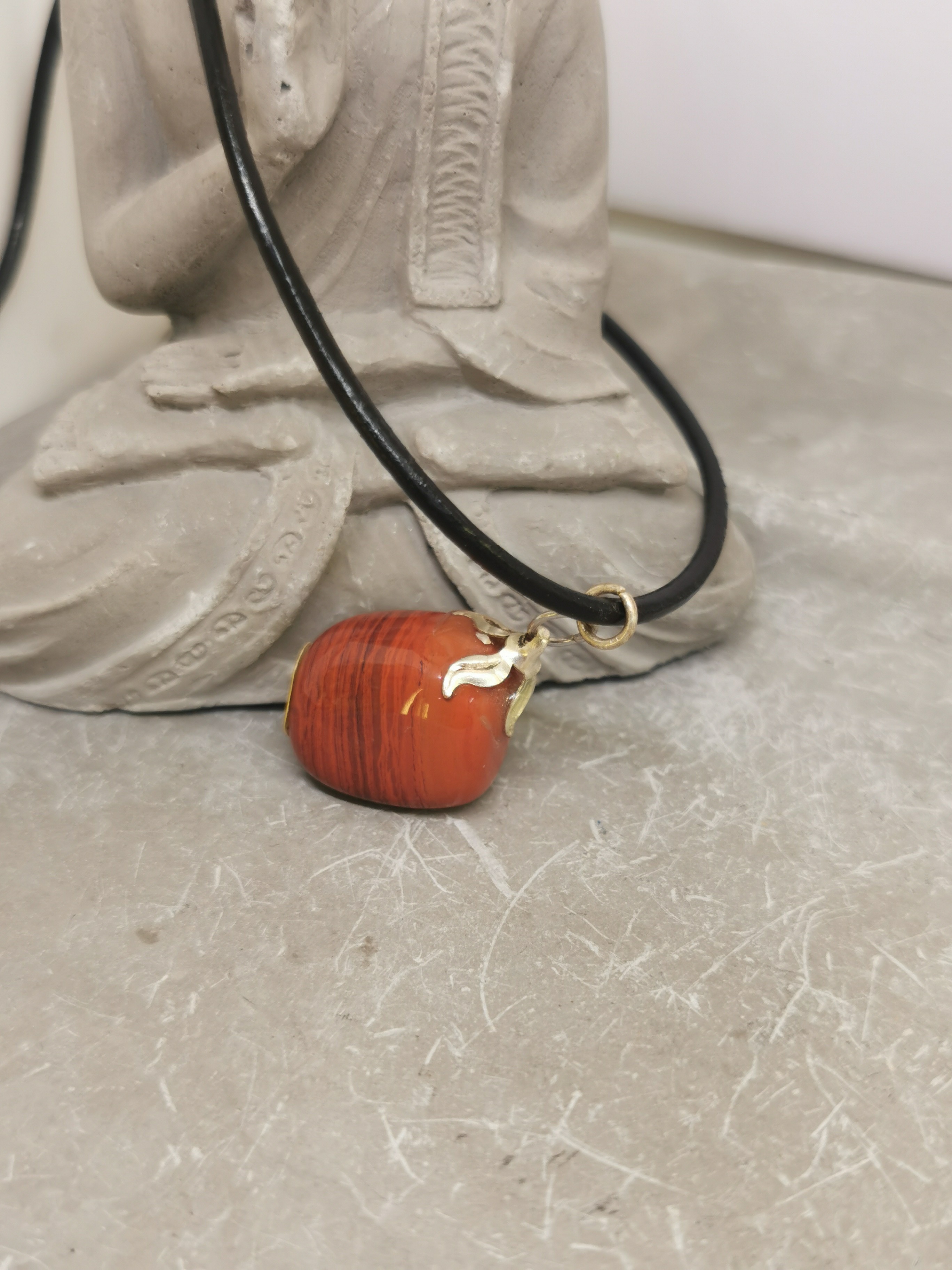 Collier Jaspe Rouge Poli sur Cordon Cuir Noir