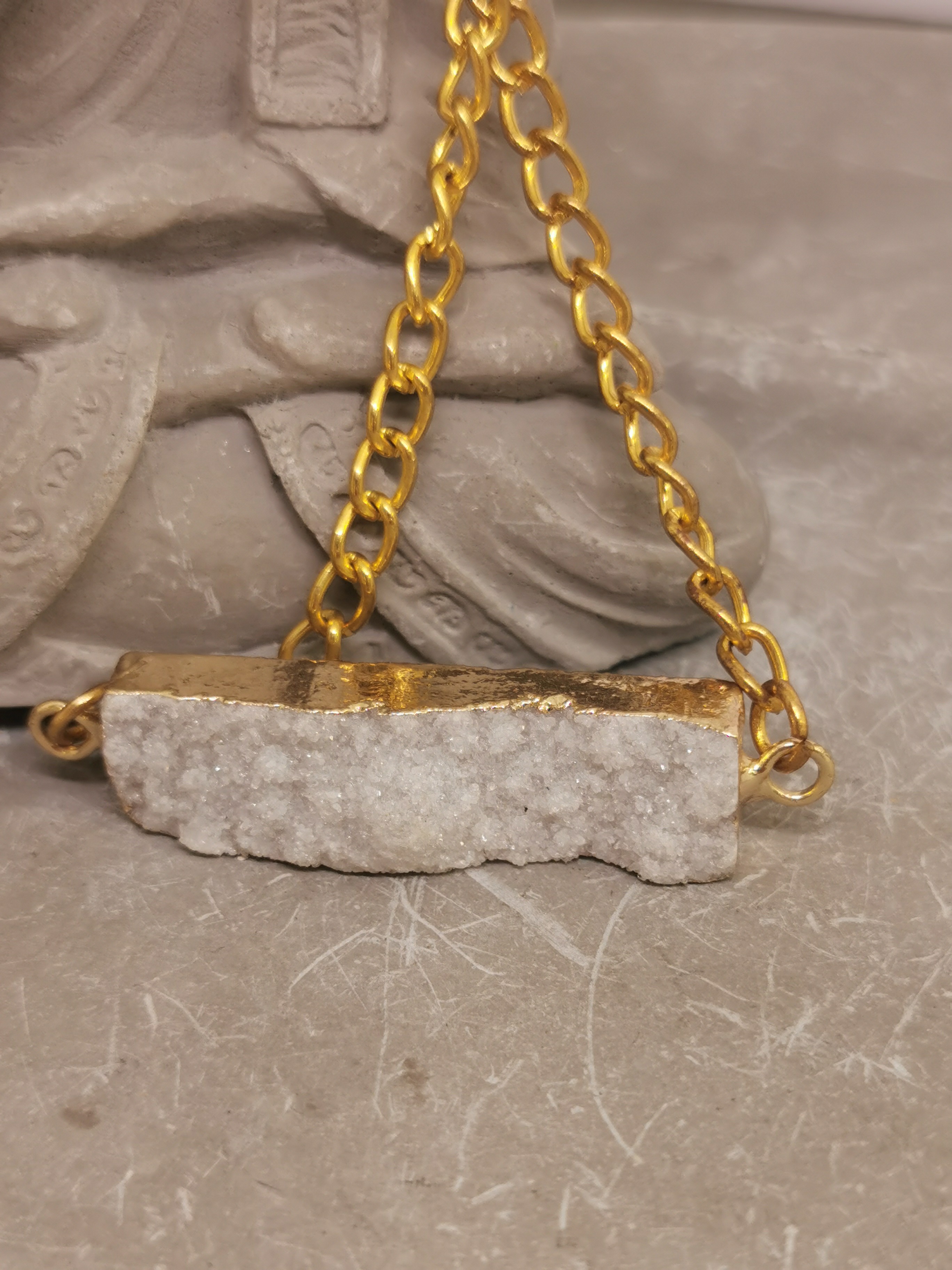 Collier Cristal de Roche Brut & Poli sur Chaîne Dorée