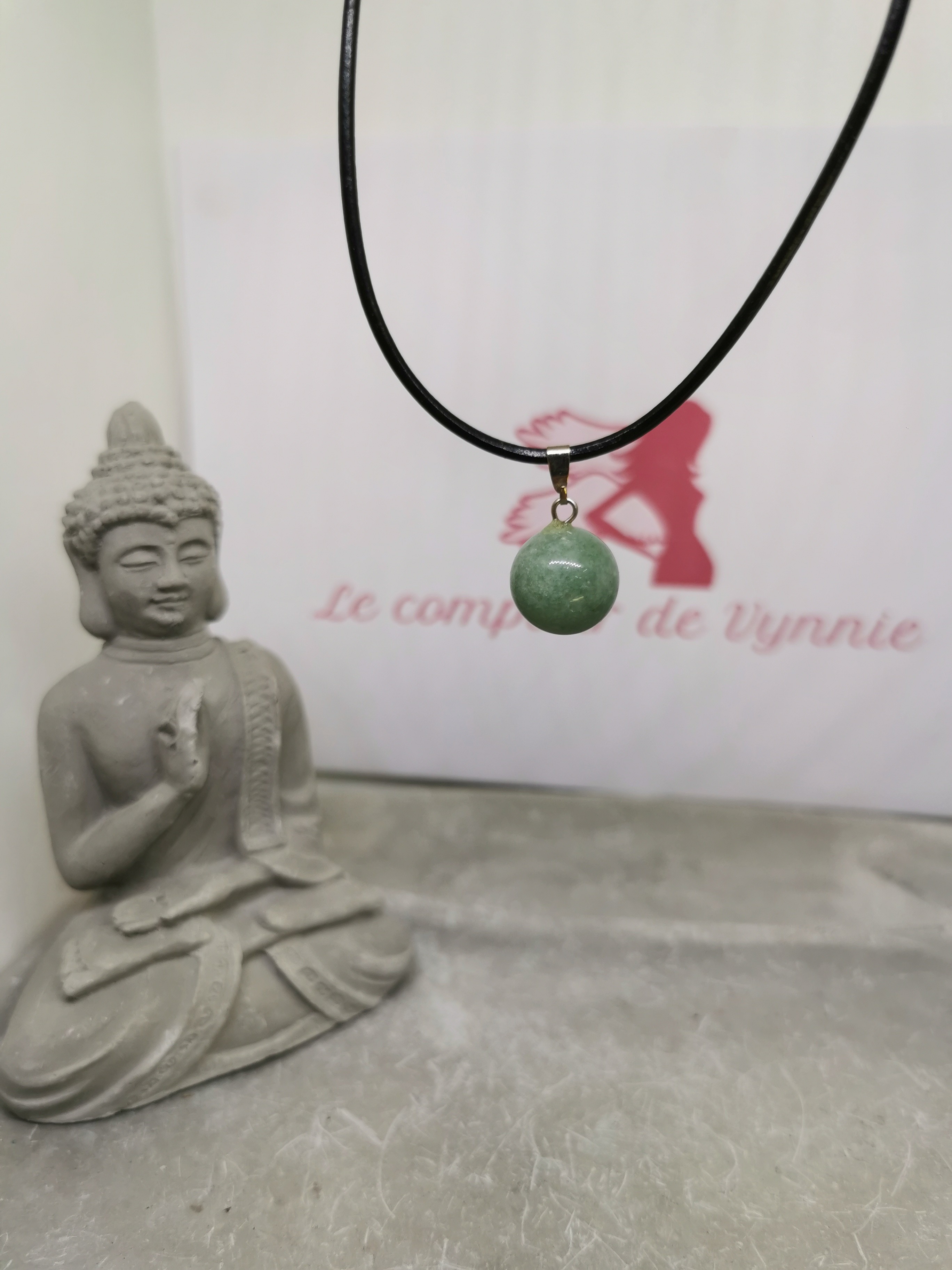 Sa forme ronde symbolise la perfection, l’unité et l’harmonie. L’aventurine, aux nuances de vert douces et naturelles, capte la lumière avec subtilité et apporte une touche à la fois élégante et apaisante.