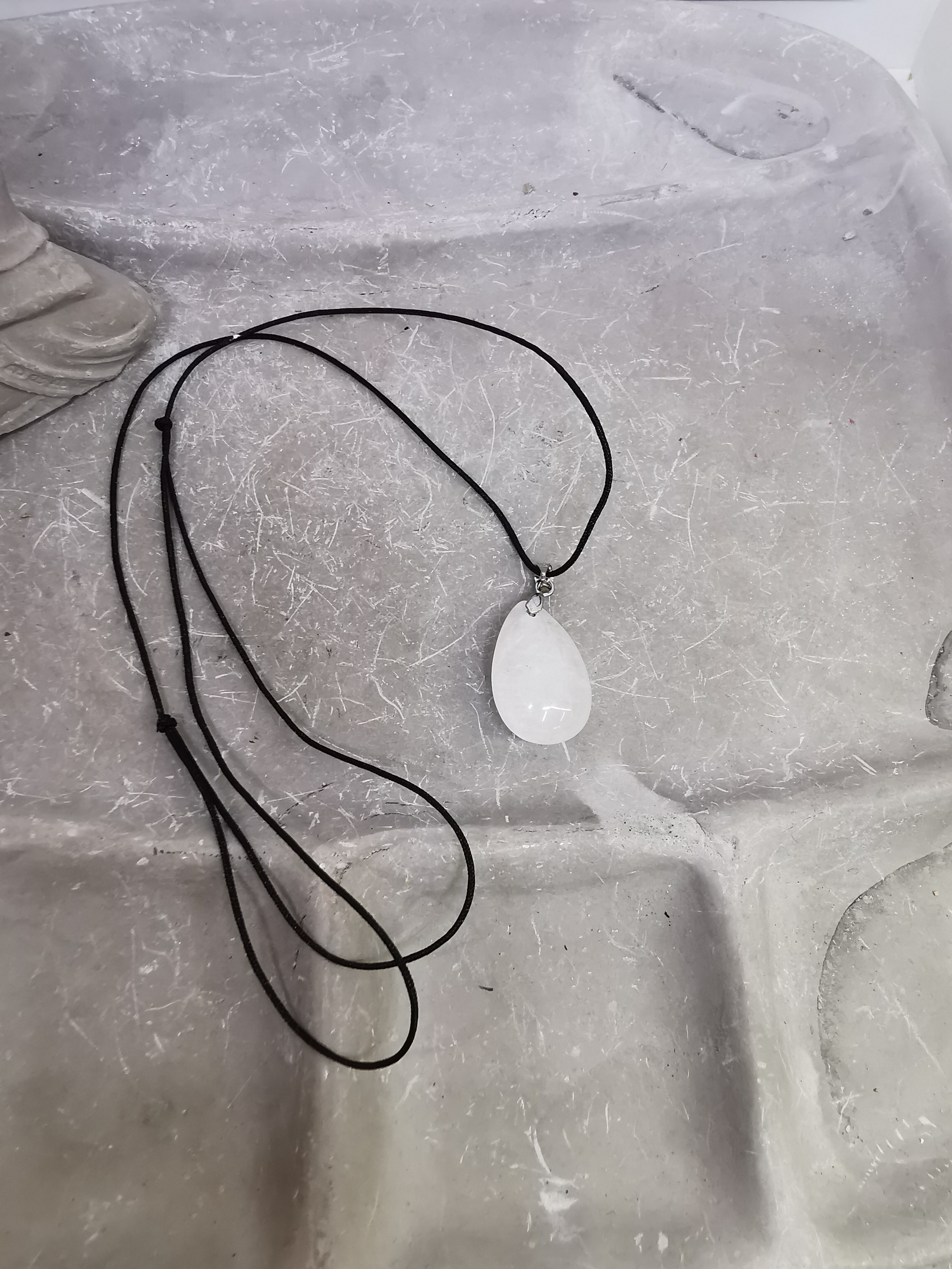 La forme goutte apporte une touche fluide et féminine, renforçant l’énergie apaisante de la pierre.
