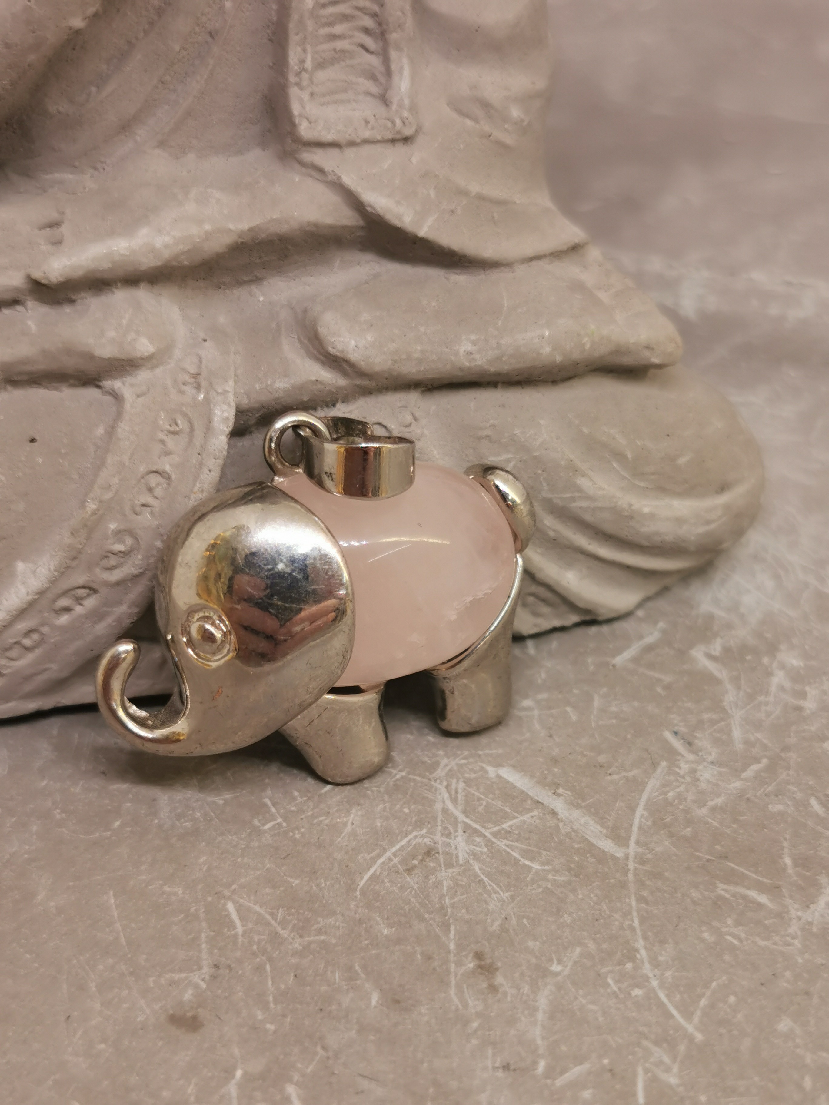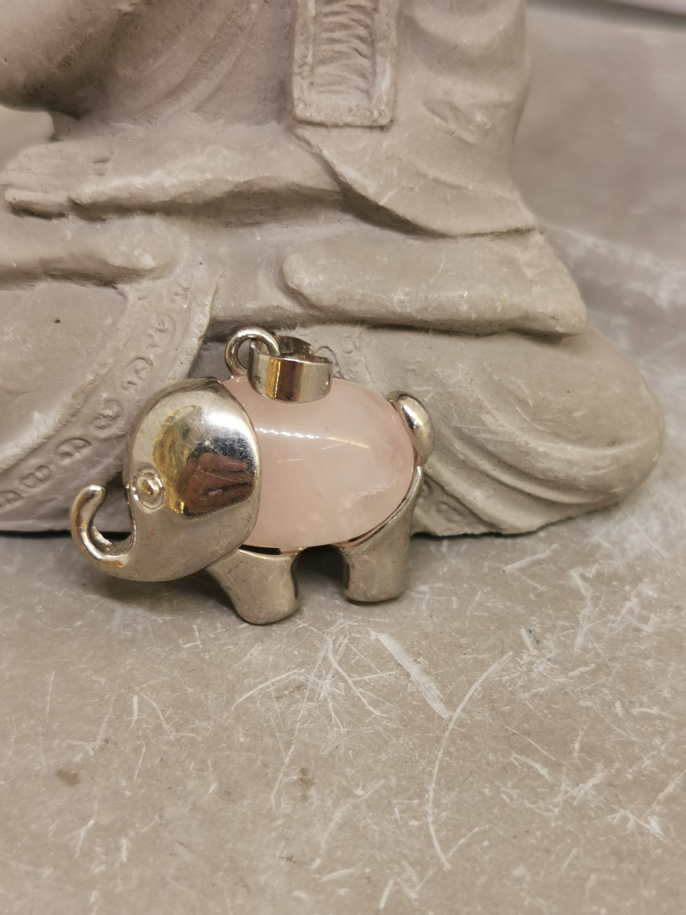 La forme d’éléphant renforce la dimension spirituelle de ce bijou en quartz rose, symbole universel de sagesse, de protection et de stabilité. Monté sur une structure en acier inoxydable, ce pendentif offre une parfaite alliance entre solidité et finesse.