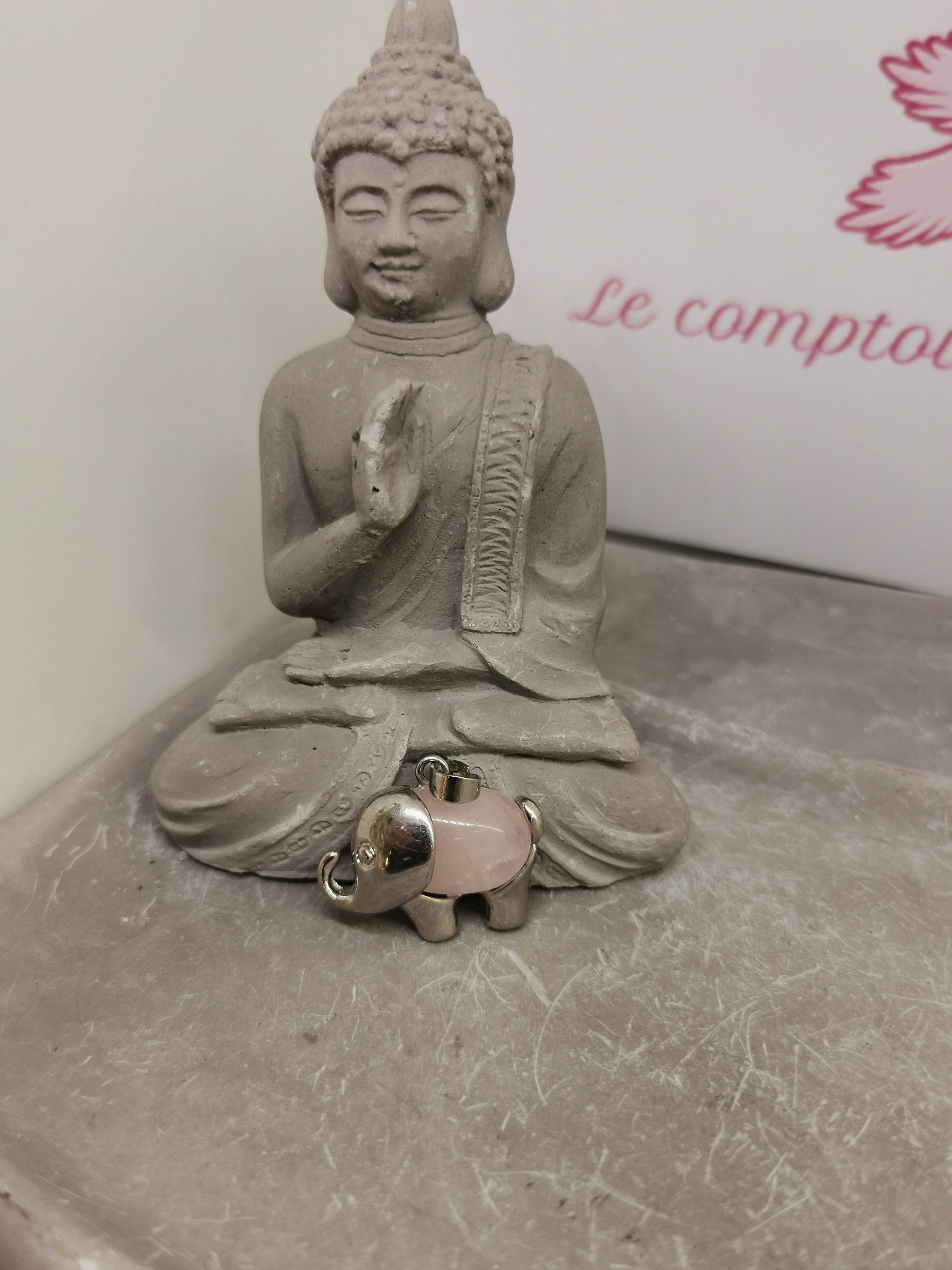 Ce pendentif en quartz rose naturel associe la douceur de la pierre de l’amour à la puissance symbolique de l’éléphant. Un bijou ésotérique idéal pour apporter apaisement émotionnel, protection douce et harmonie intérieure.