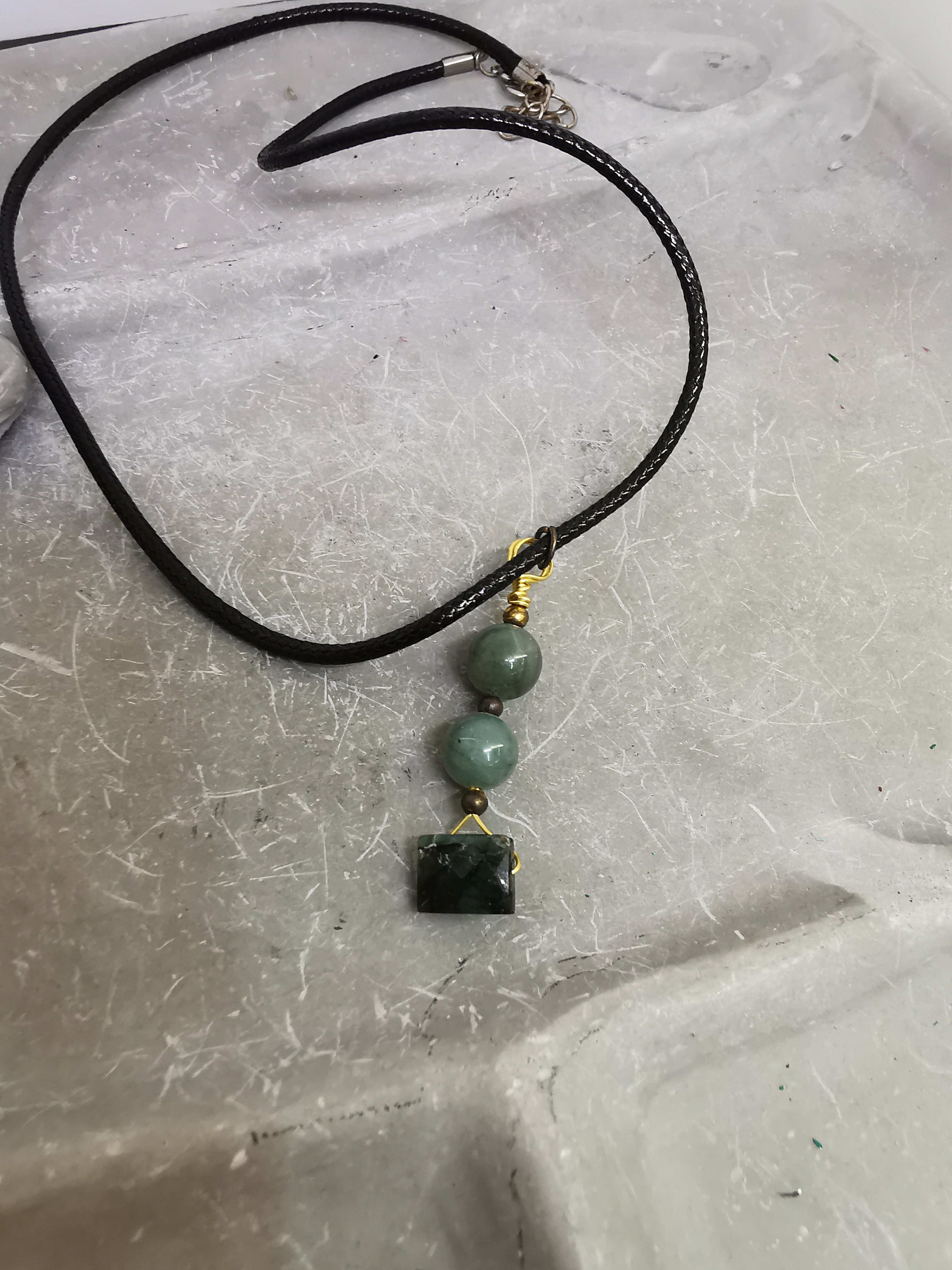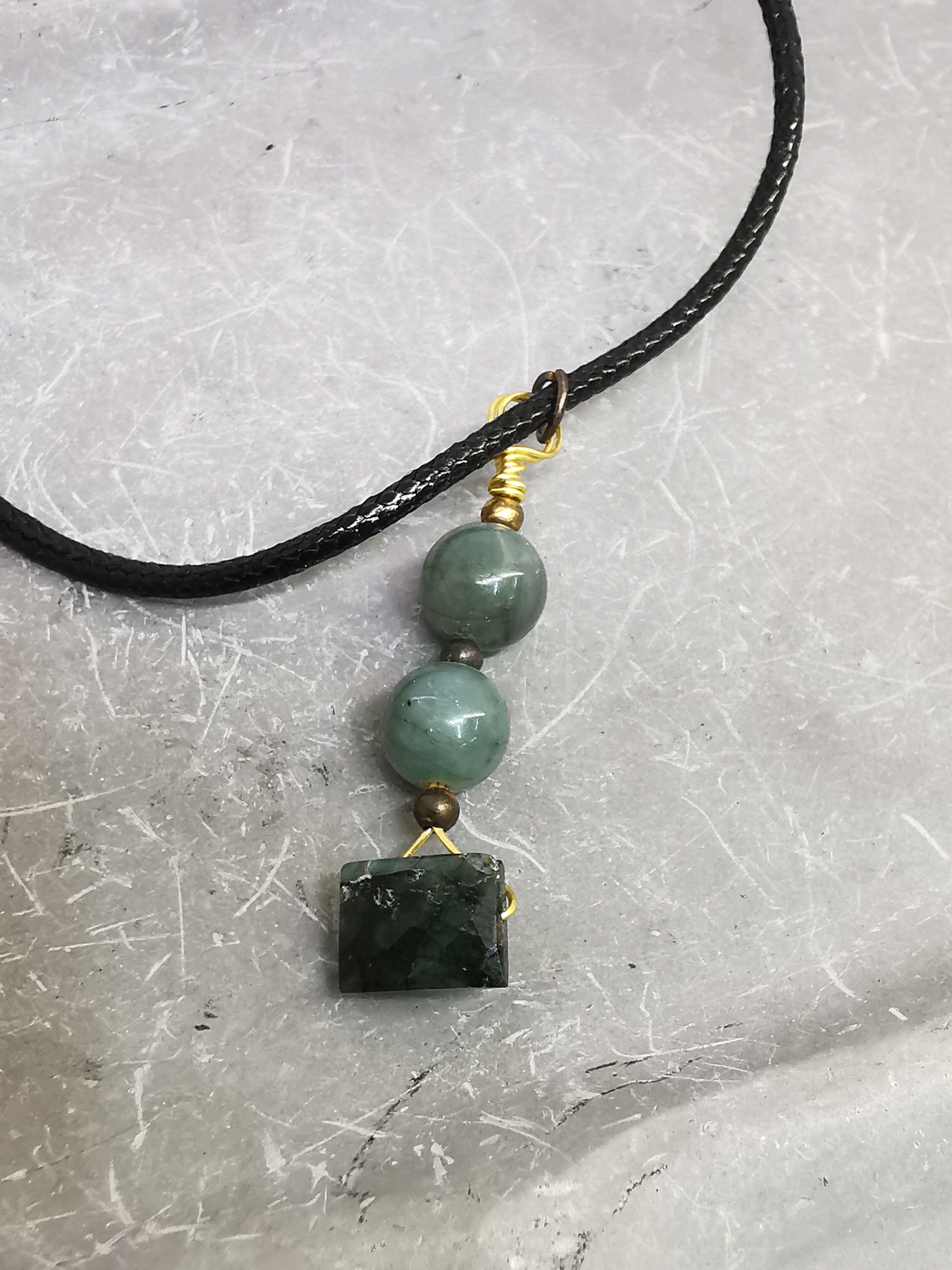 Pierre : Émeraude naturelle (perles 8 mm + pierre facettée carrée)