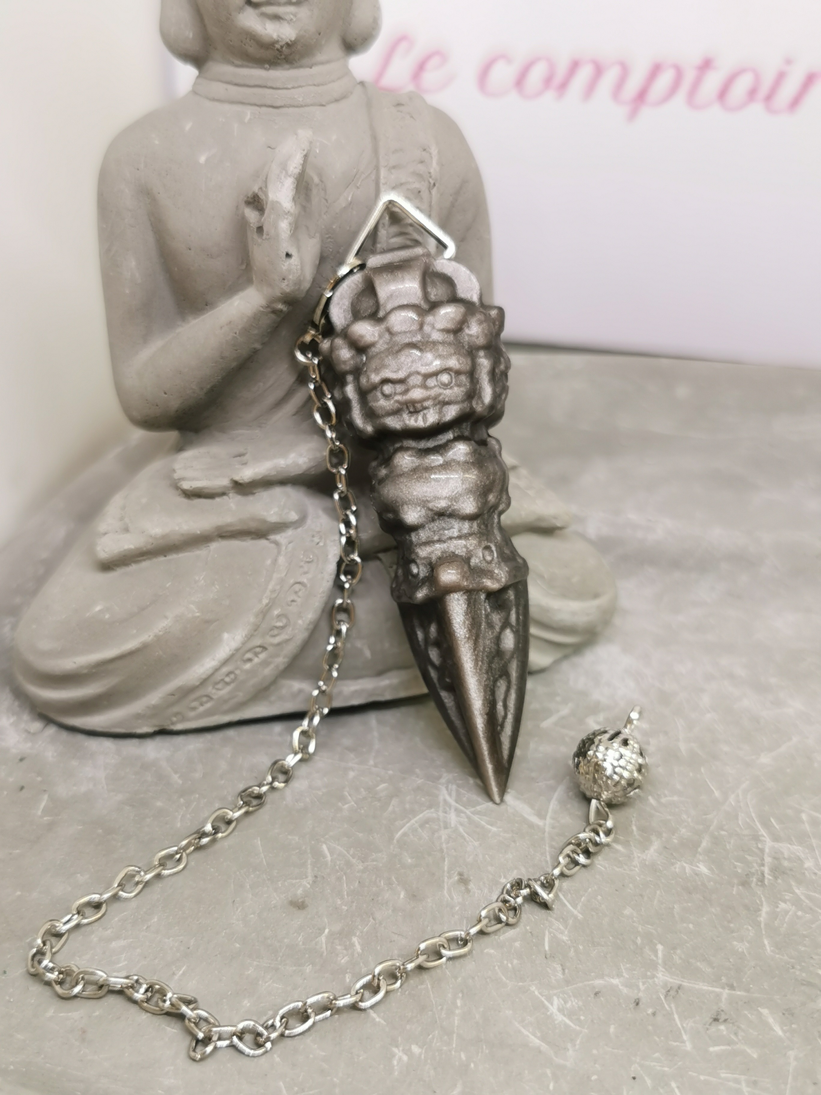 Un pendule puissant qui accompagne dans une démarche de protection, de transformation et de connexion profonde à soi.