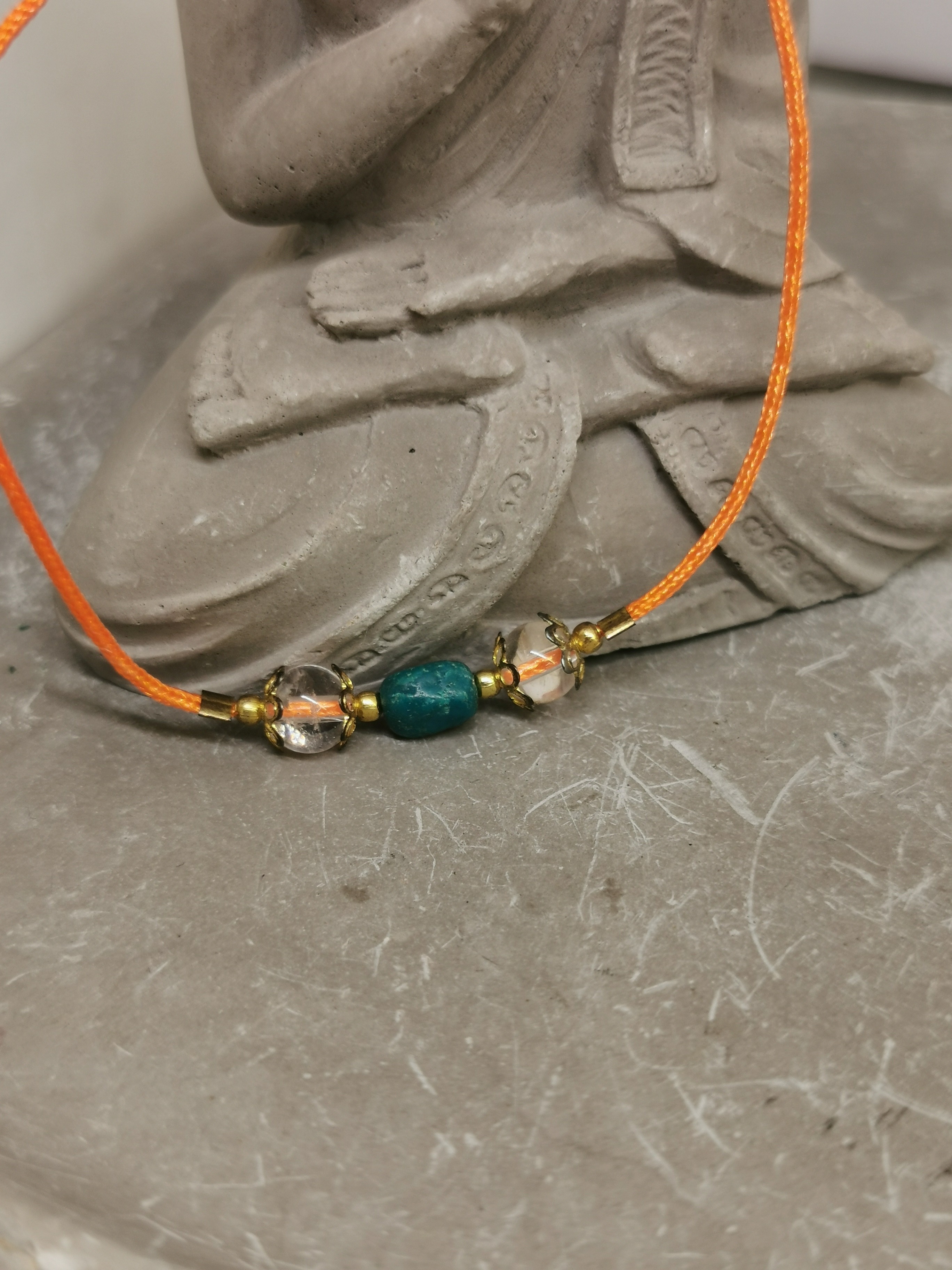 bracelet chrysocolle cristal de roche, bijou apaisement communication cordon orange