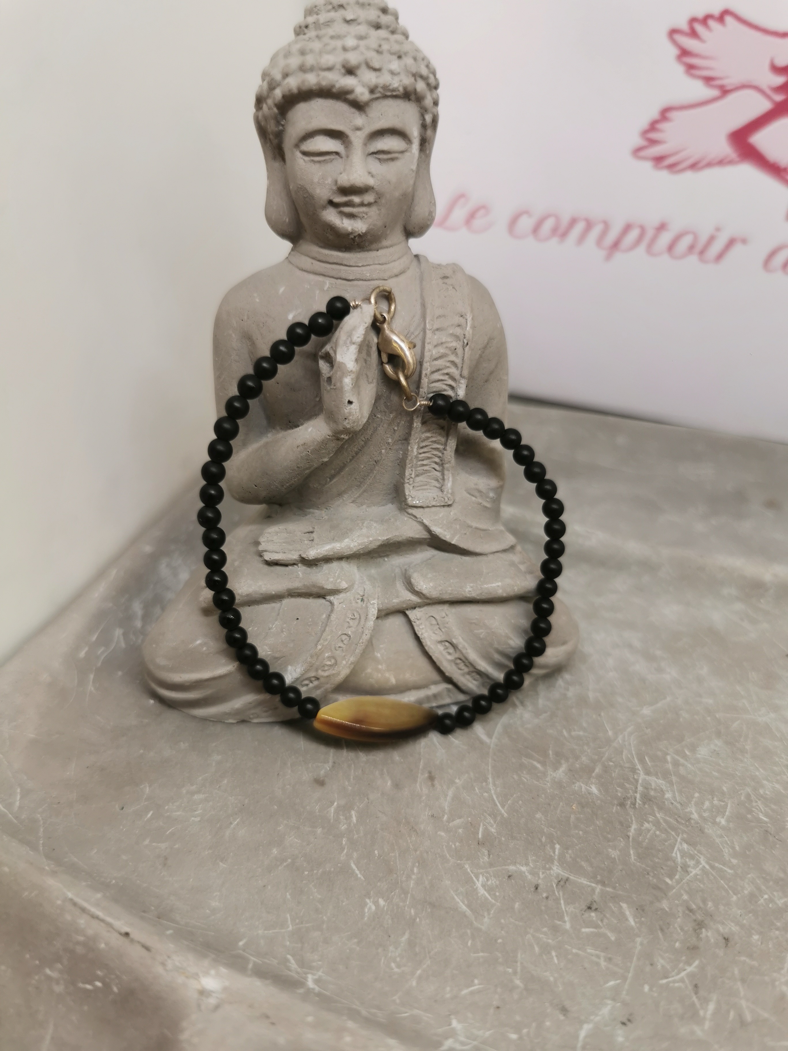 bracelet onyx noir nacre, protection énergie équilibre émotionnel