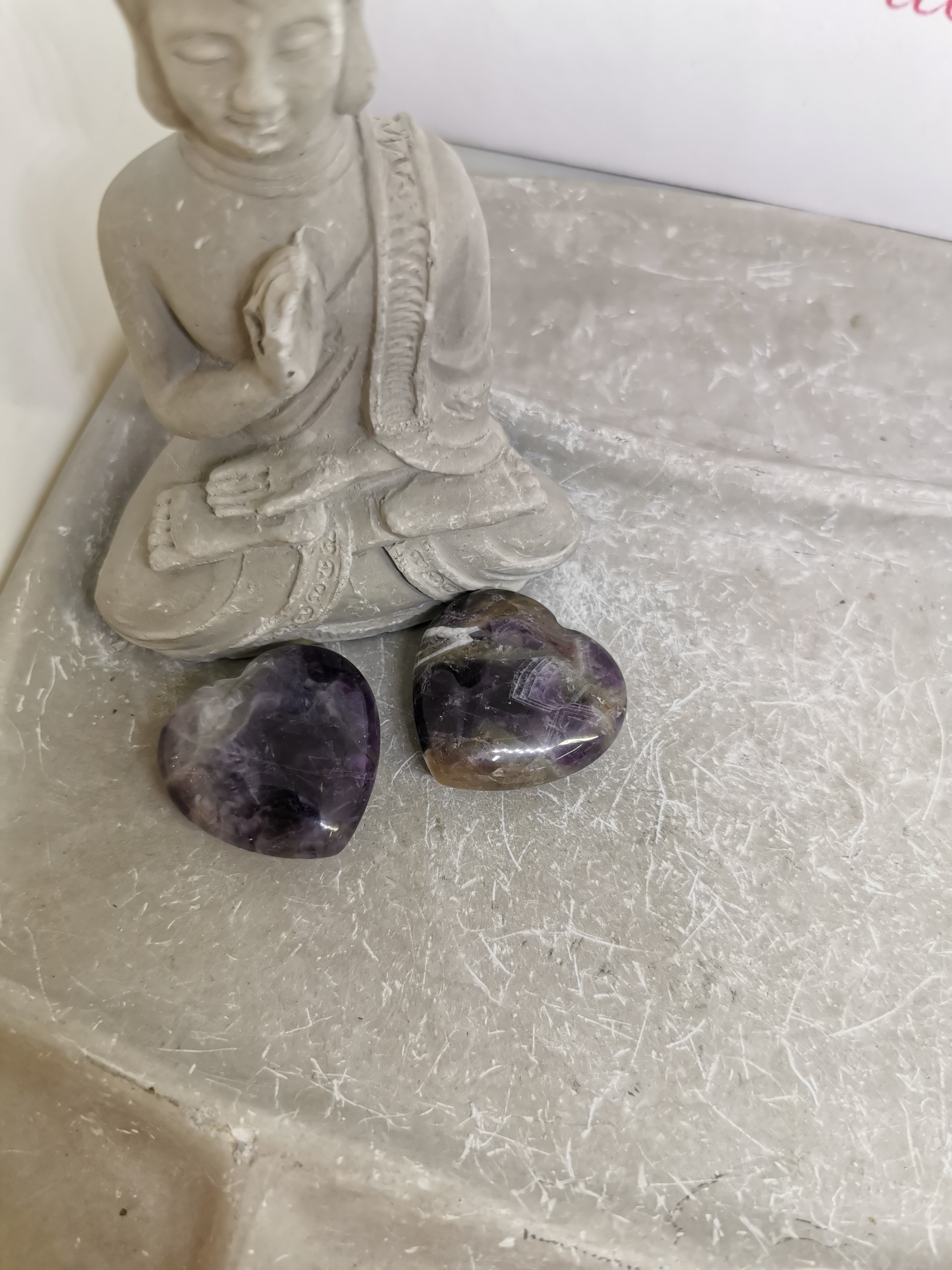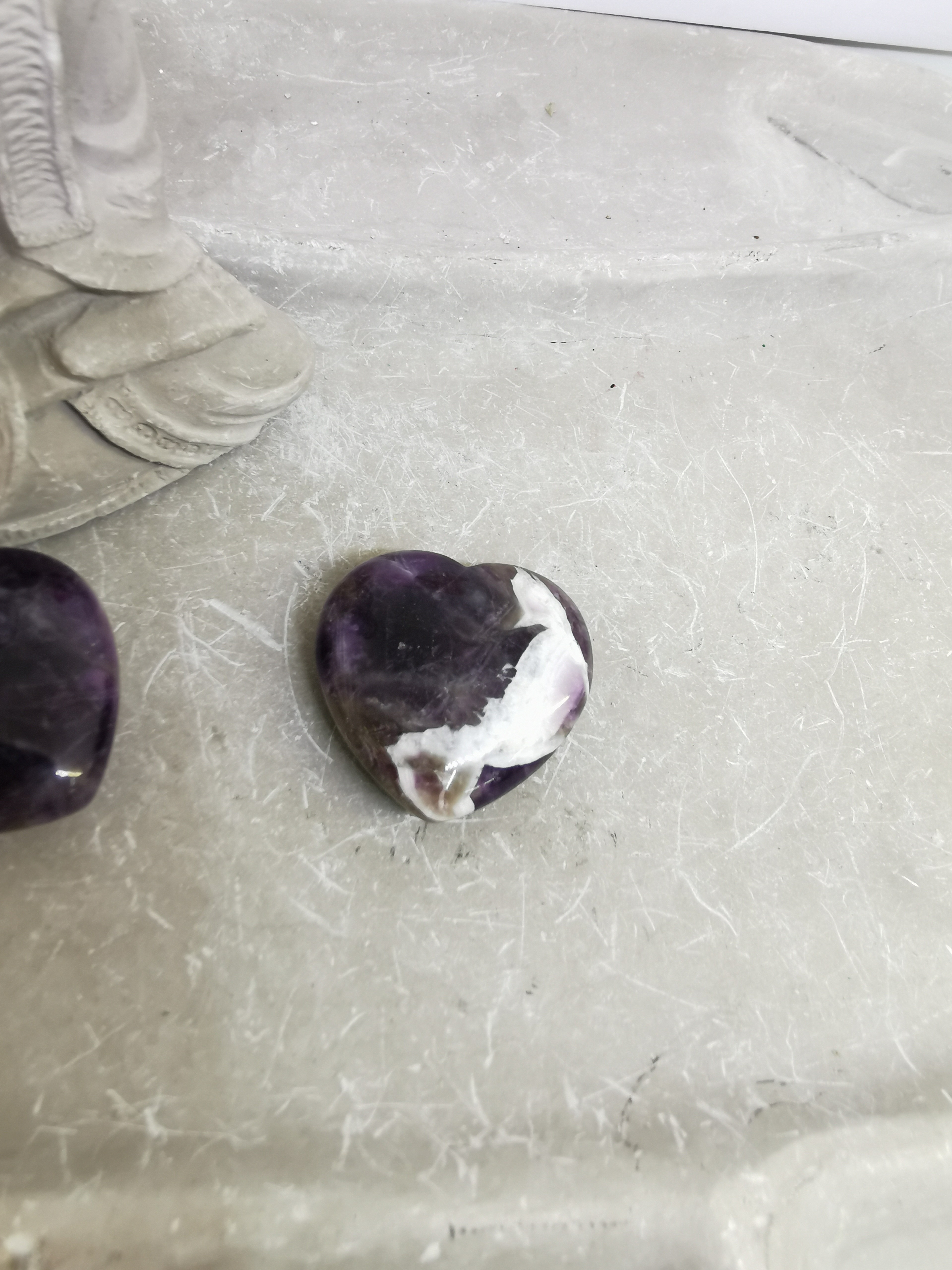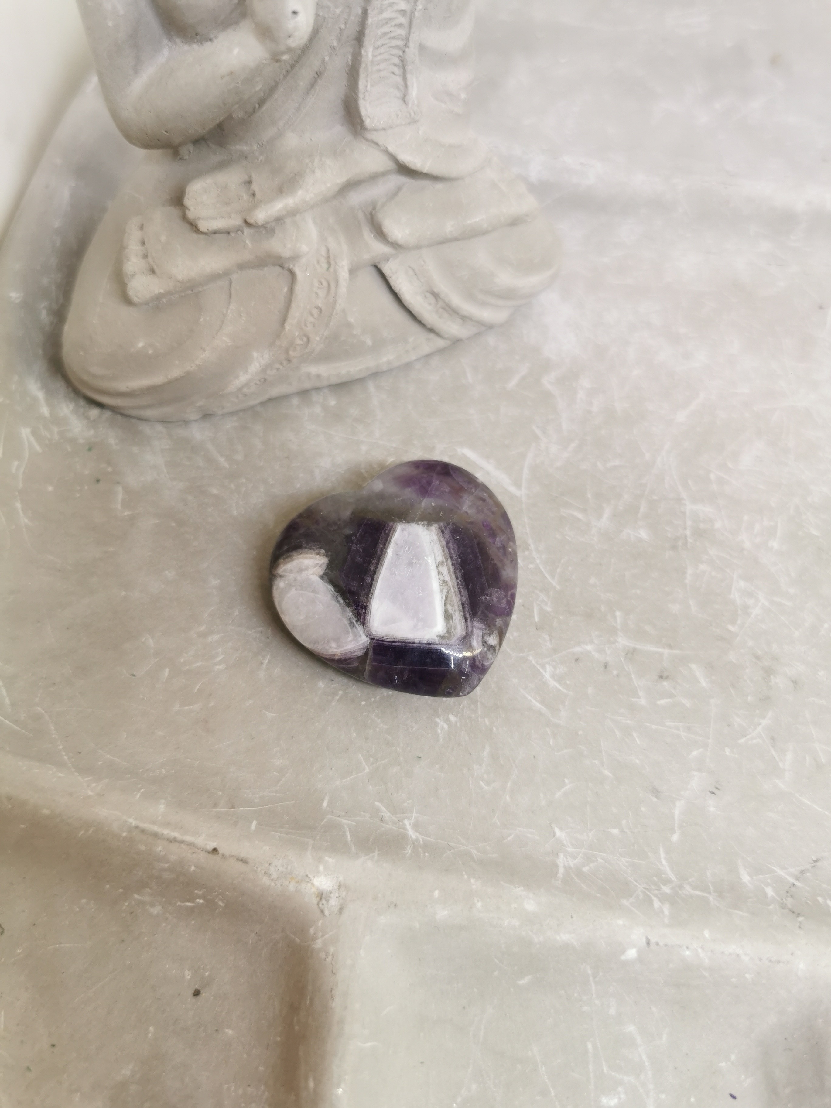 Pierre coeur améthyste chevron naturelle, apaisement intuition protection