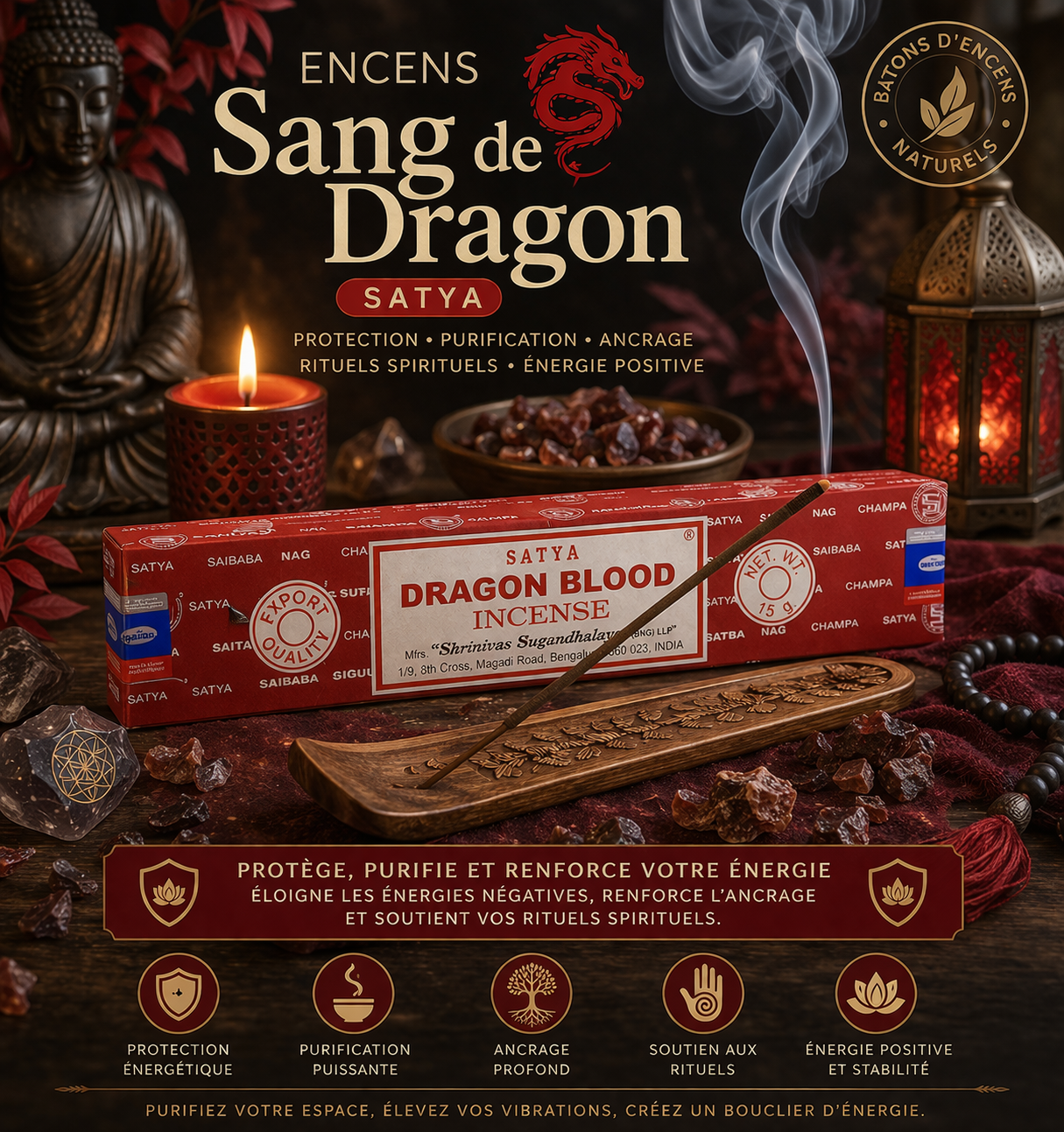 Cet encens Sang de Dragon Satya est idéal pour :