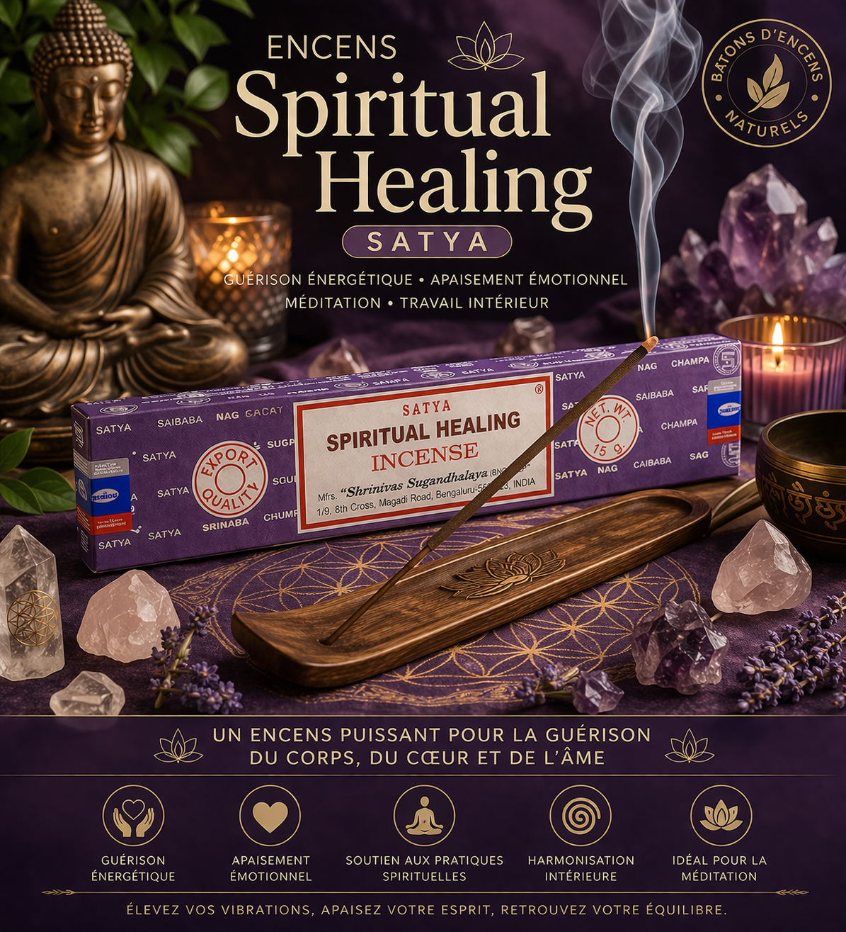 Cet encens Spiritual Healing Satya est idéal pour :