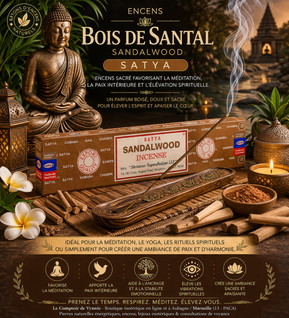 Disponible sur Le Comptoir de Vynnie, votre boutique ésotérique en ligne et à Aubagne / Marseille (13 – PACA), spécialisée en pierres naturelles énergétiques, encens naturels et consultations de voyance.