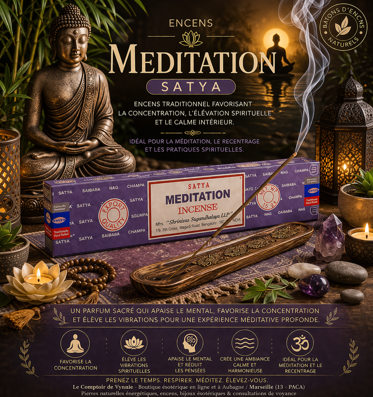 Utilisé régulièrement, cet encens Meditation devient un véritable allié pour accompagner vos pratiques spirituelles et votre bien-être quotidien.