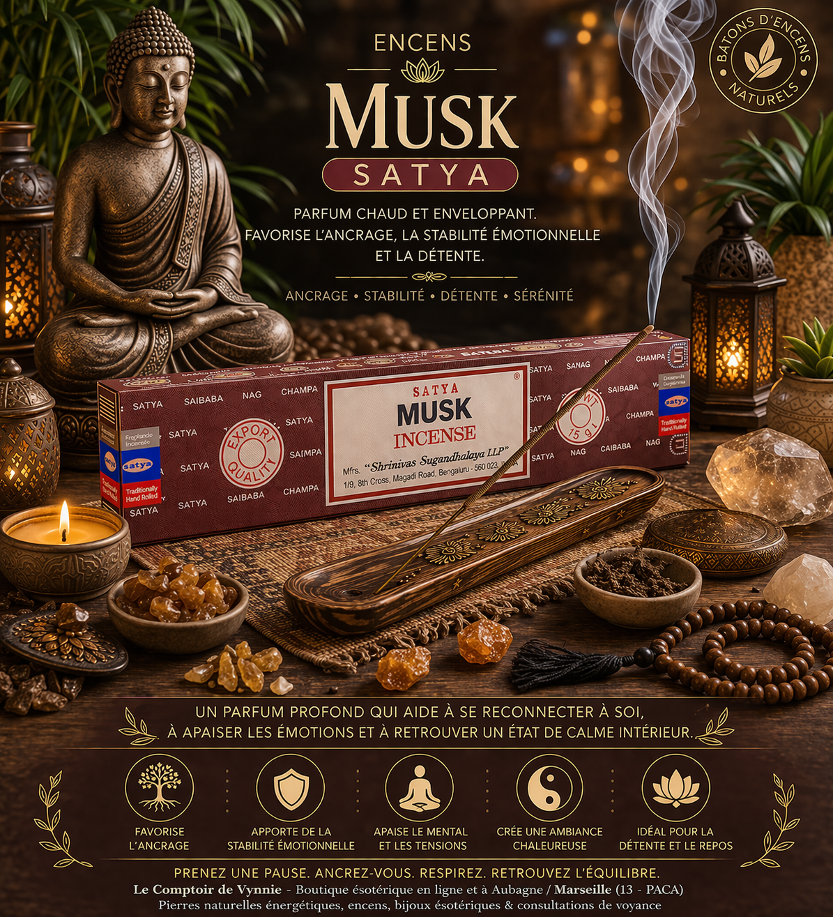 Encens Musk Satya – Ancrage et stabilité émotionnelle – Bâtons naturels