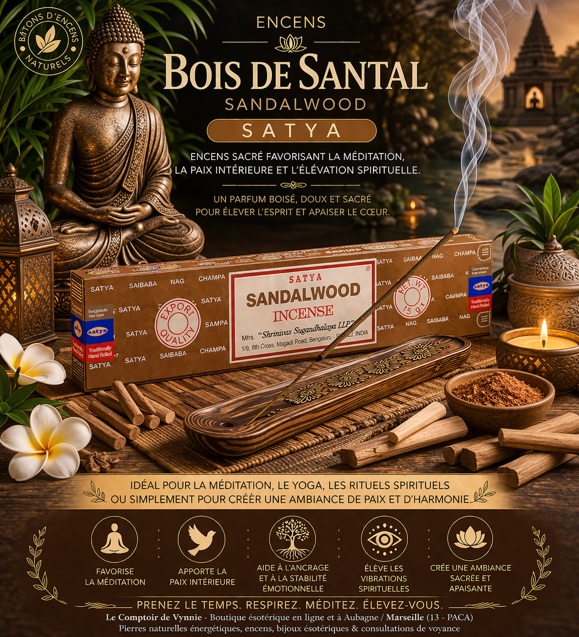Plongez dans une ambiance sacrée avec cet encens Bois de Santal Satya naturel.