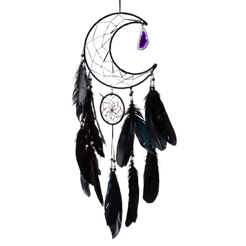 Attrape-rêves lune noire avec pierre – Protection énergétique et purification des énergies
