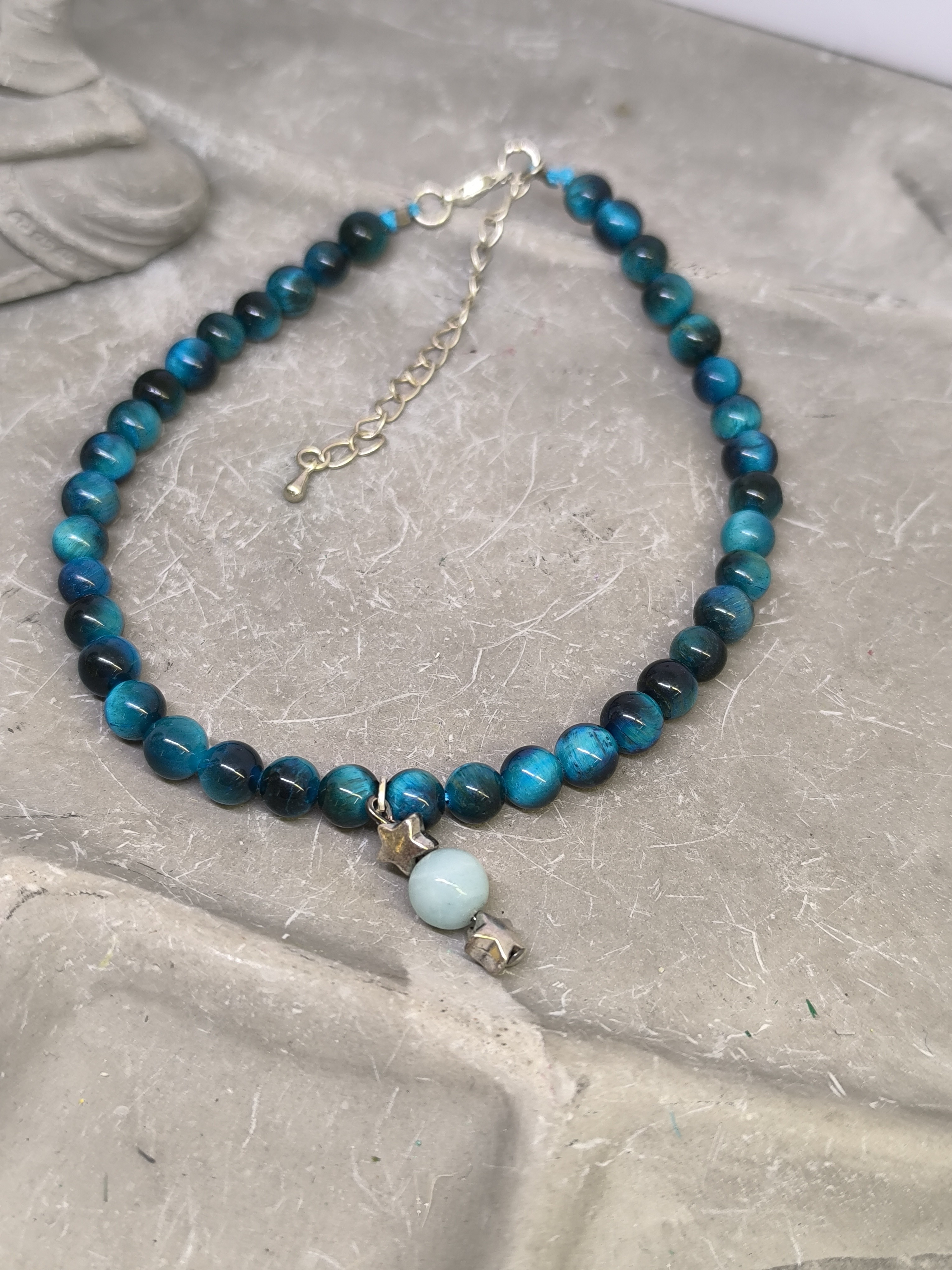 Chevillière œil de tigre bleu et amazonite – Apaisement et protection – Pierre naturelle
