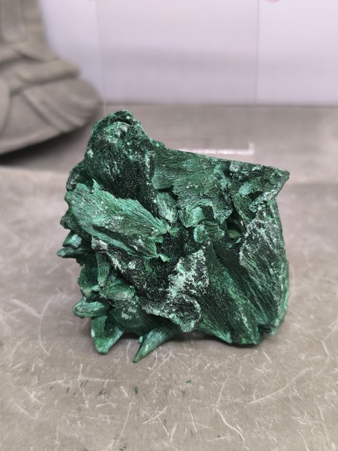 Une malachite fibreuse d’une puissance visuelle et énergétique rare, au vert profond presque hypnotique.