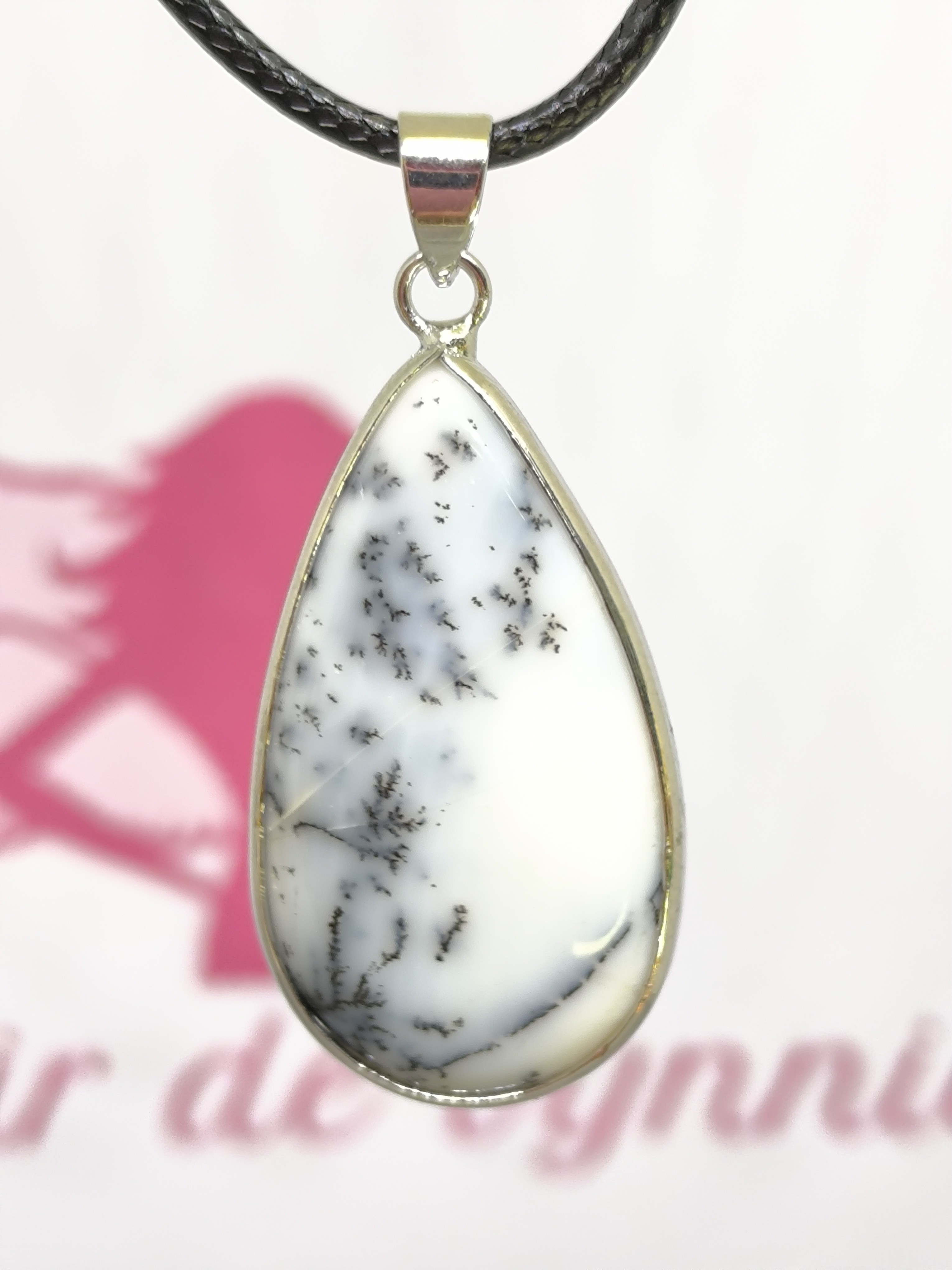 Ce collier en pierre naturelle d’agate dendritique se distingue par sa forme élégante en goutte et ses motifs naturels uniques, rappelant des paysages ou des branches d’arbres. Chaque pièce est différente, faisant de ce bijou en pierres naturelles un objet à la fois esthétique et symbolique.