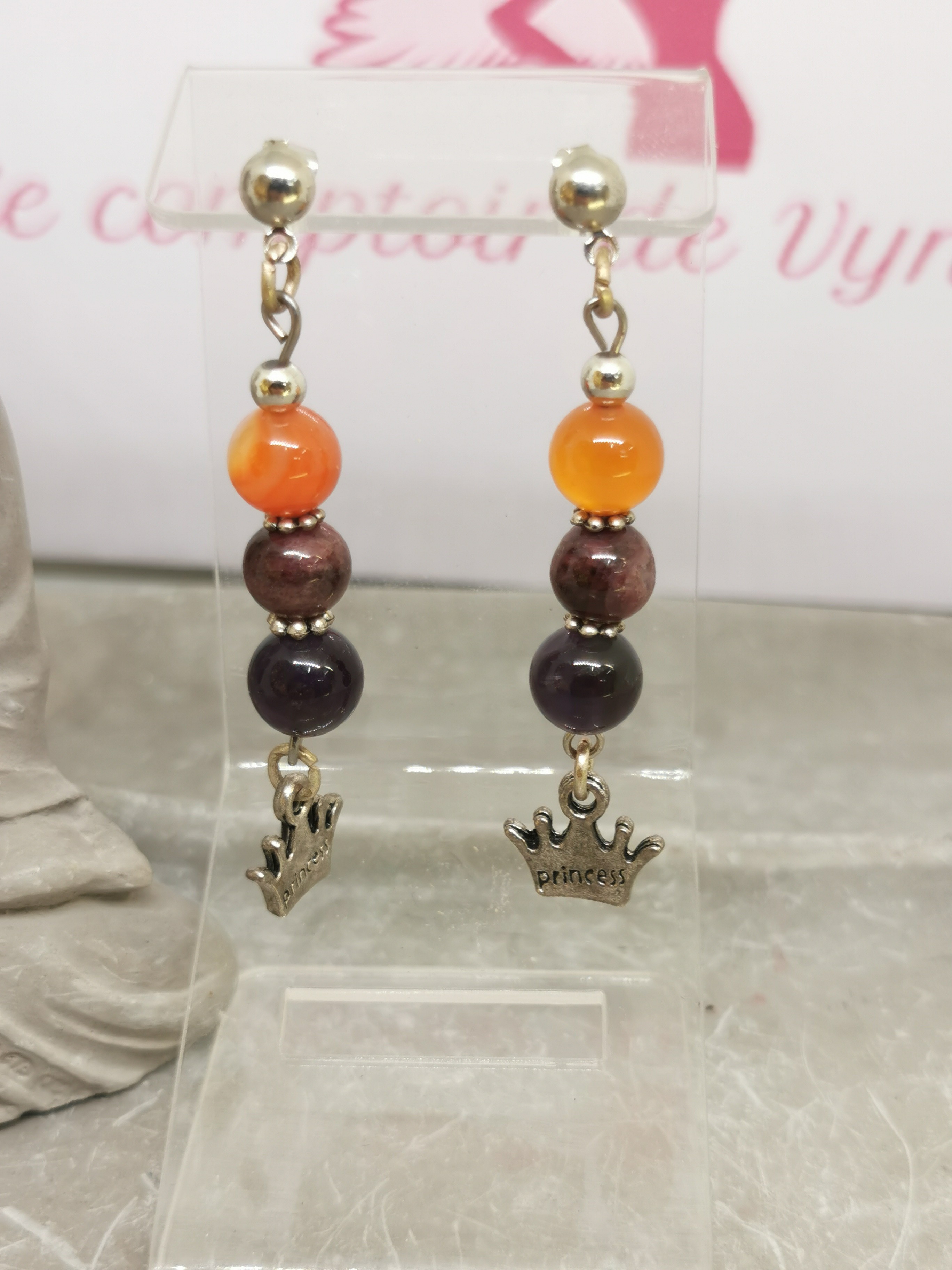 Boucles d’oreilles améthyste, cornaline et lépidolite