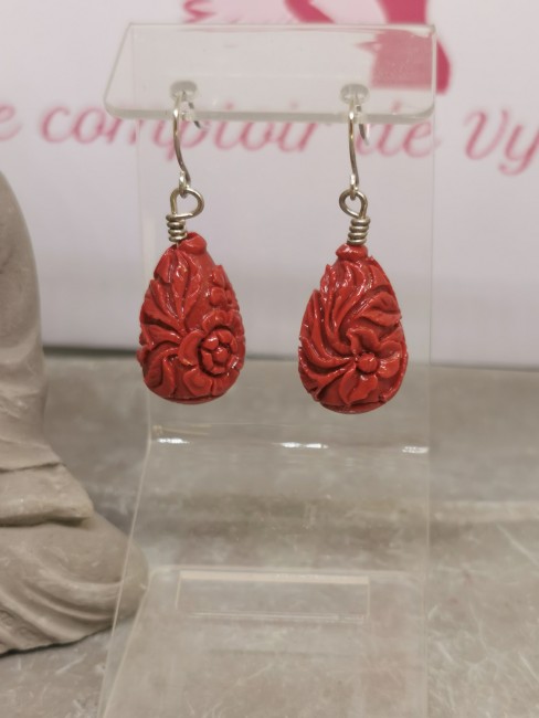 Boucles d’oreilles corail de gorgone blanche sculpté