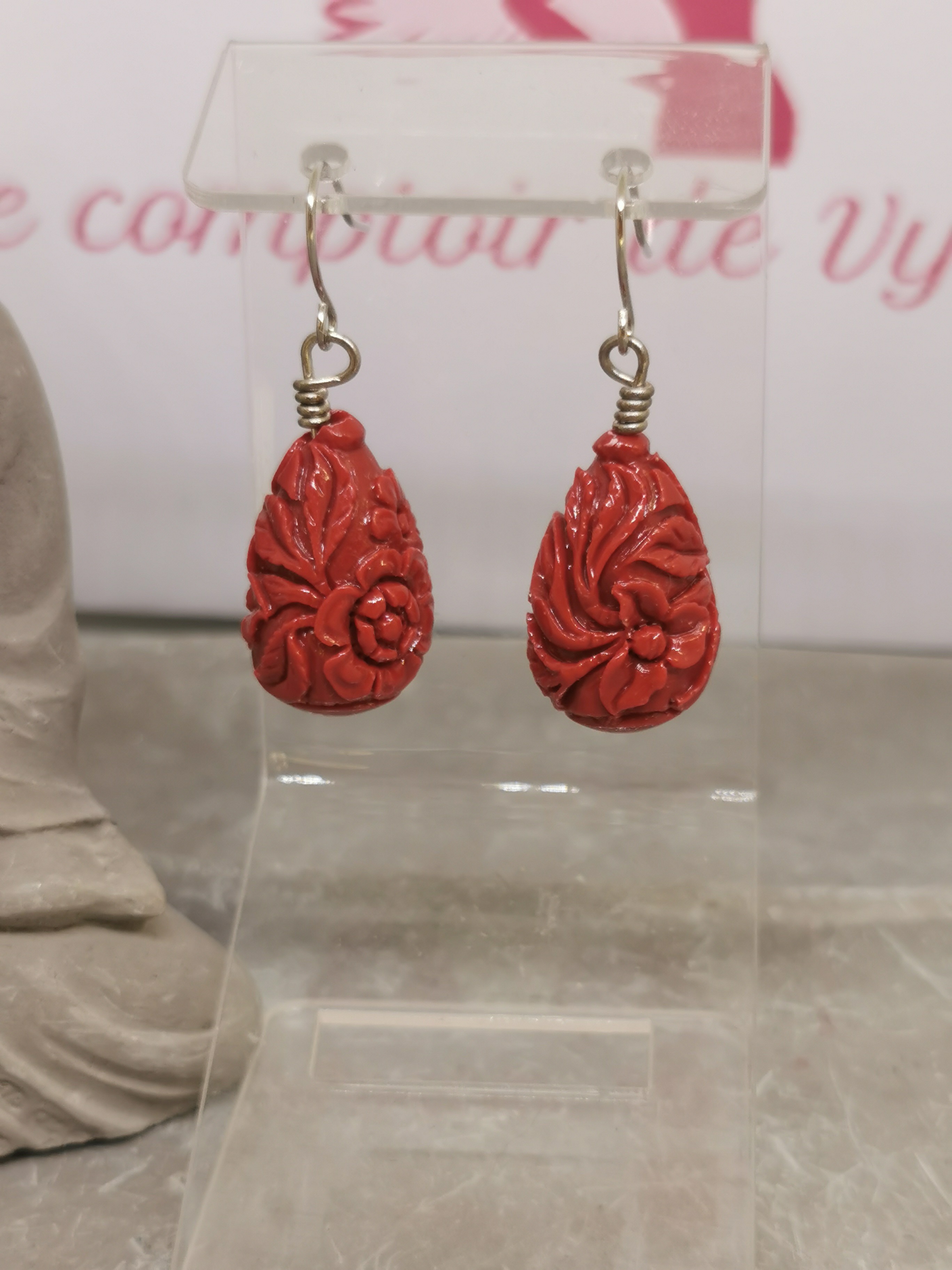 Boucles d’oreilles corail de gorgone rouge sculpté