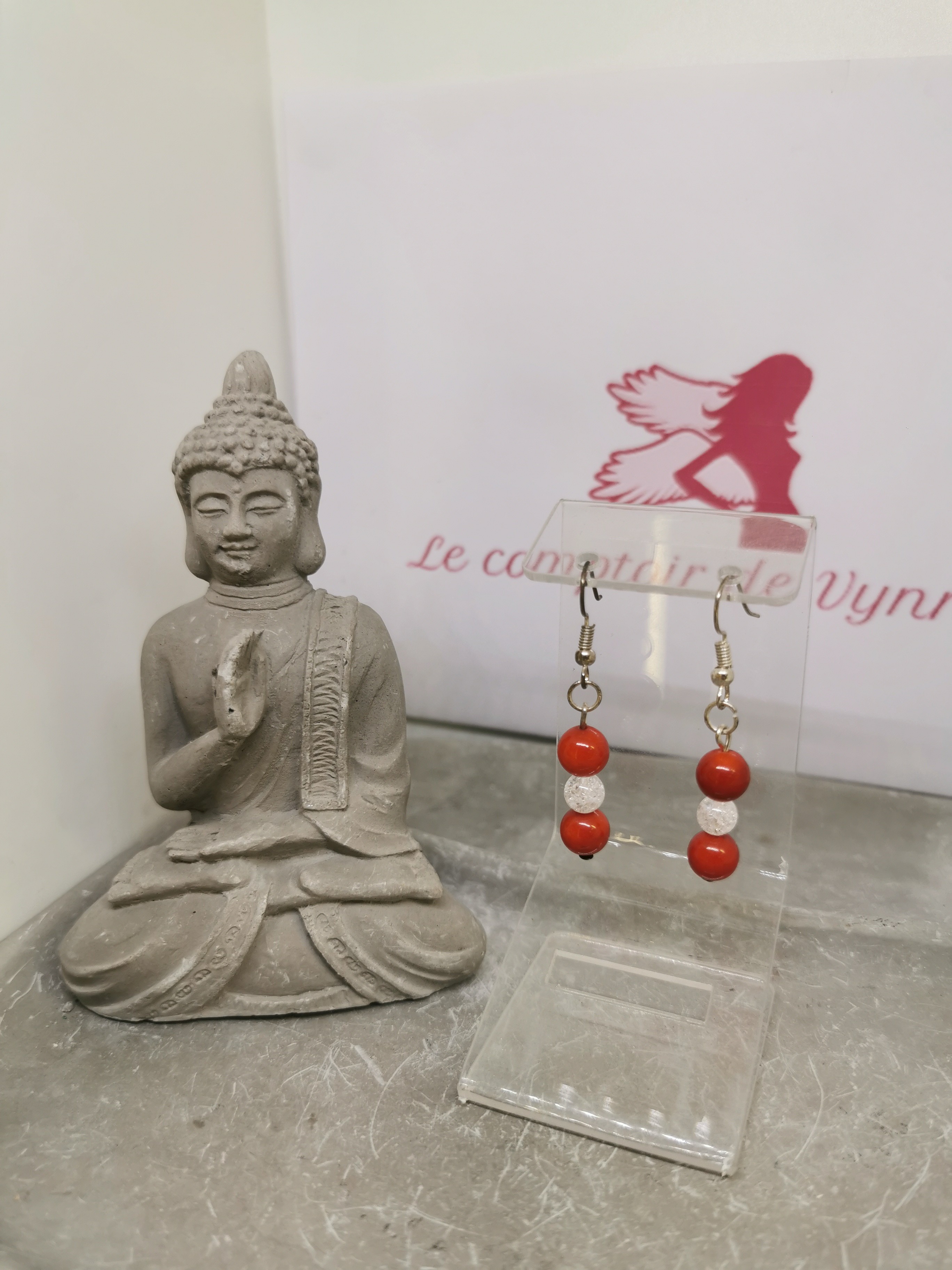 Alliez puissance et clarté avec ces boucles d’oreilles en corail rouge et cristal de roche, un bijou vibrant qui harmonise énergie et apaisement.