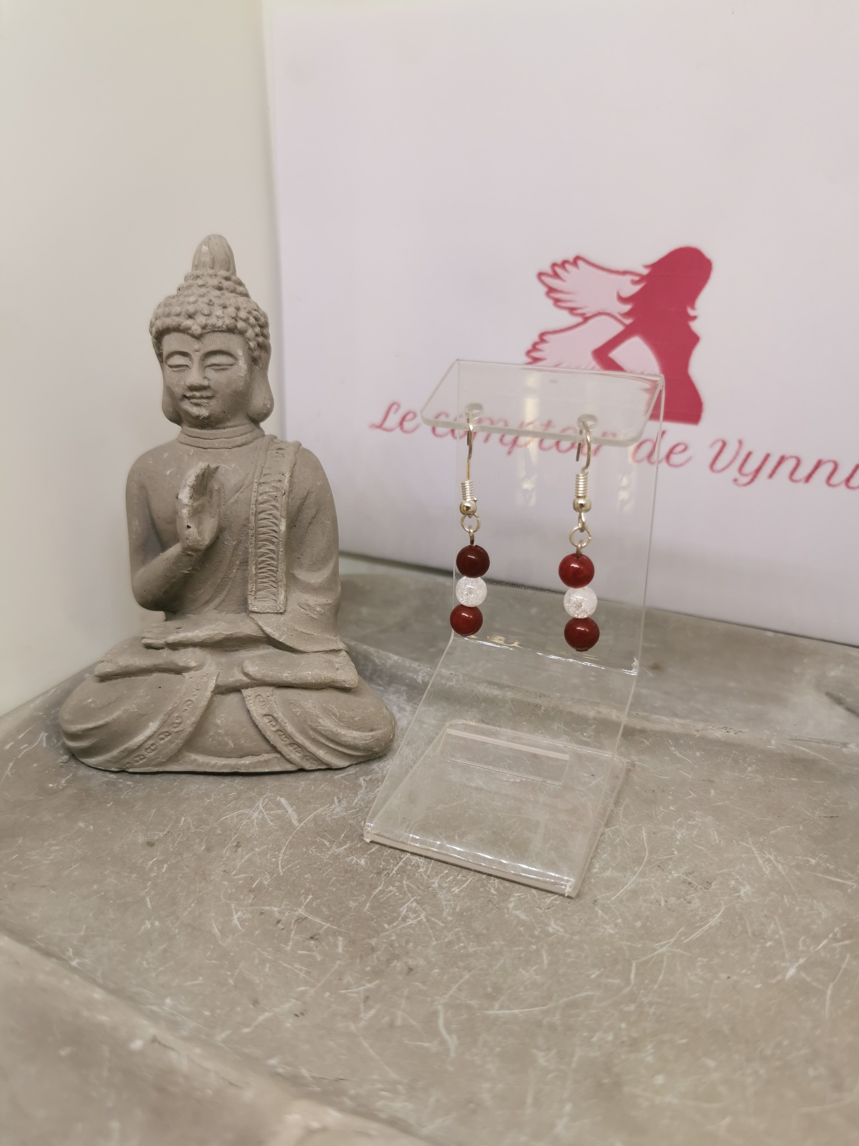 Ces boucles d’oreilles en corail bordeaux et cristal de roche incarnent l’équilibre parfait entre force intérieure et clarté mentale. Un bijou en pierre naturelle qui allie élégance et puissance énergétique.