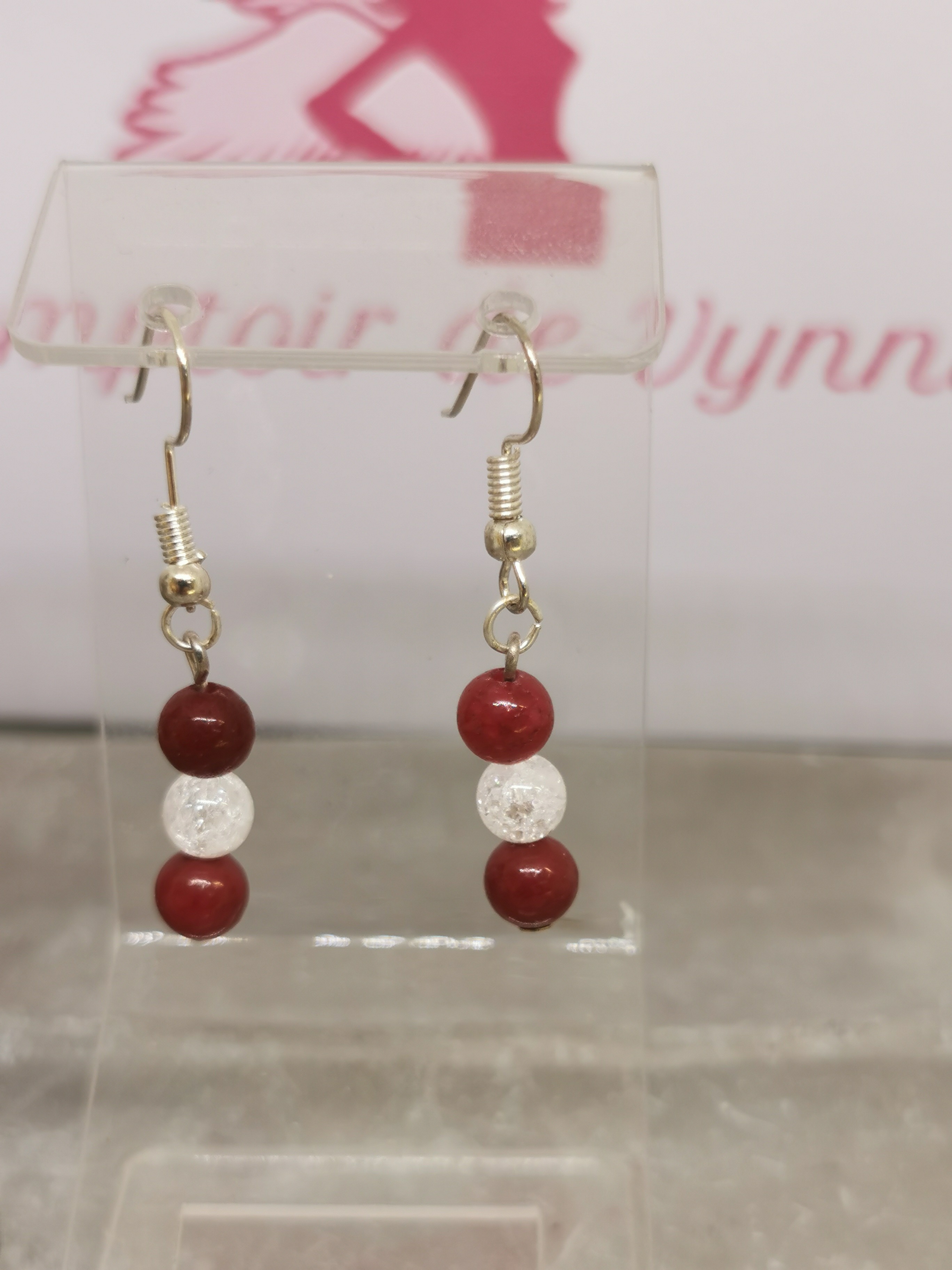 Boucles d’oreilles corail bordeaux et cristal de roche