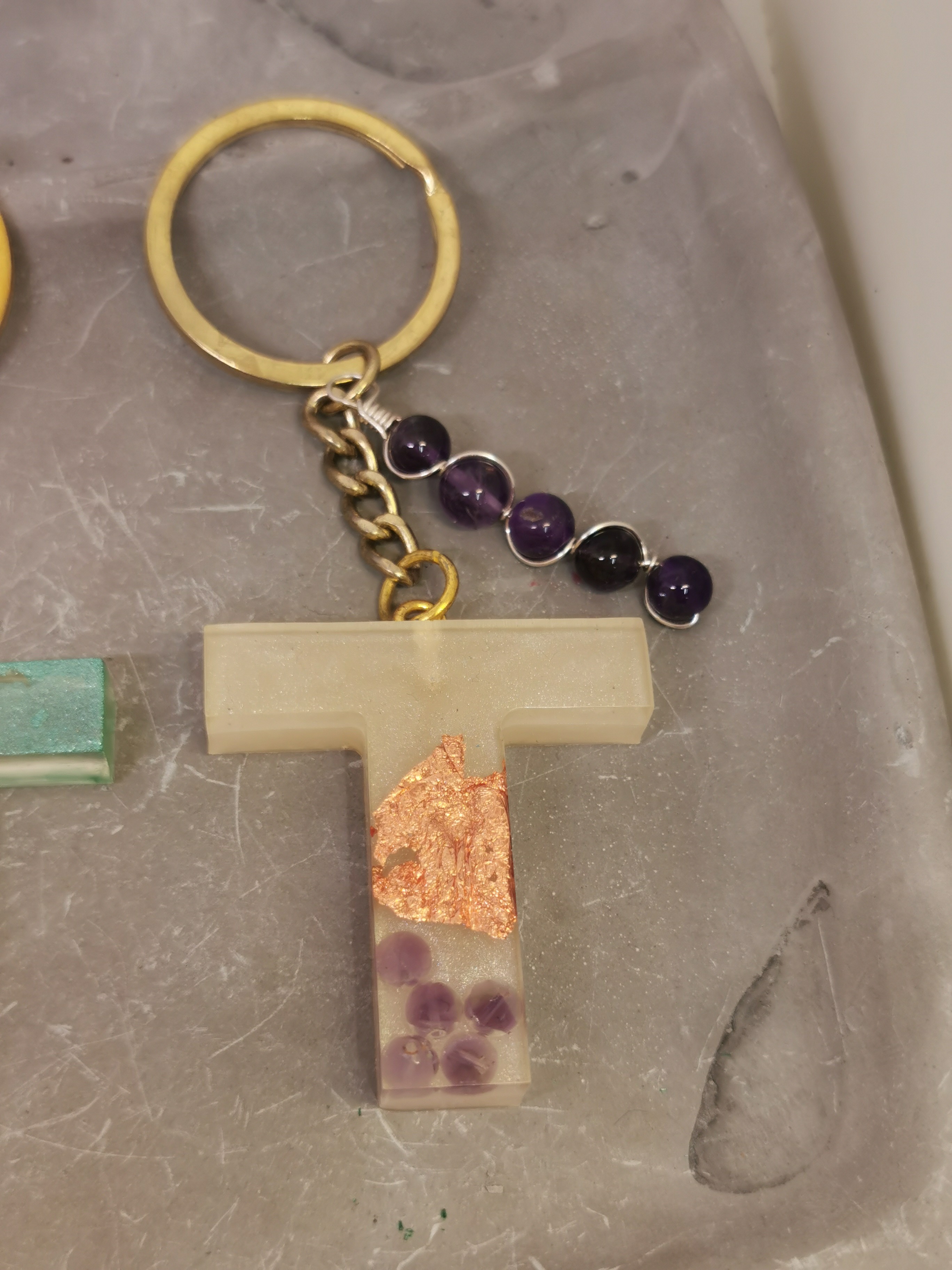 Porte-clé lettre T en résine