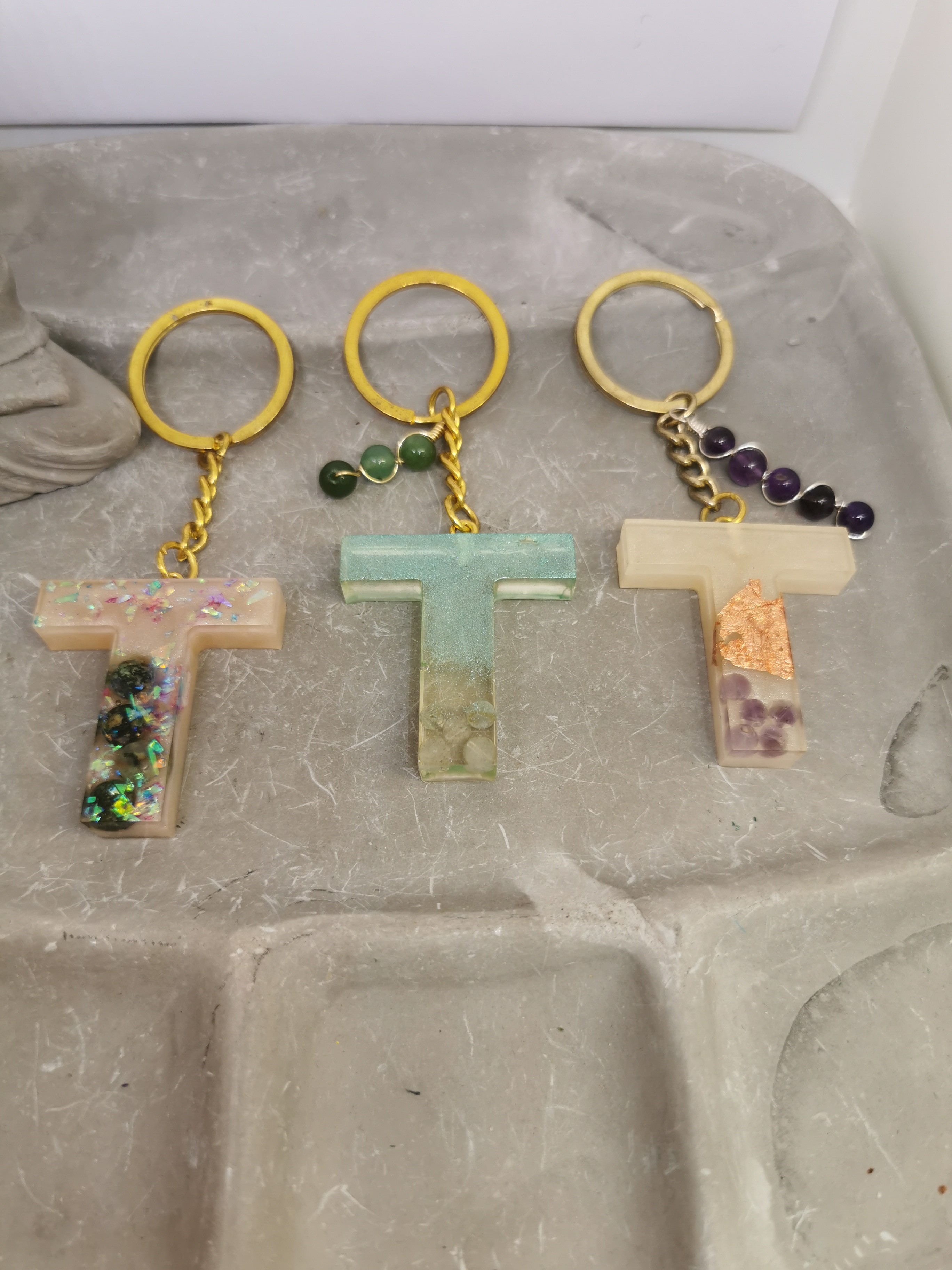 Affirmez votre identité avec ce porte-clé lettre T fait main, un bijou unique alliant élégance, énergie des pierres naturelles et symbolique personnelle.