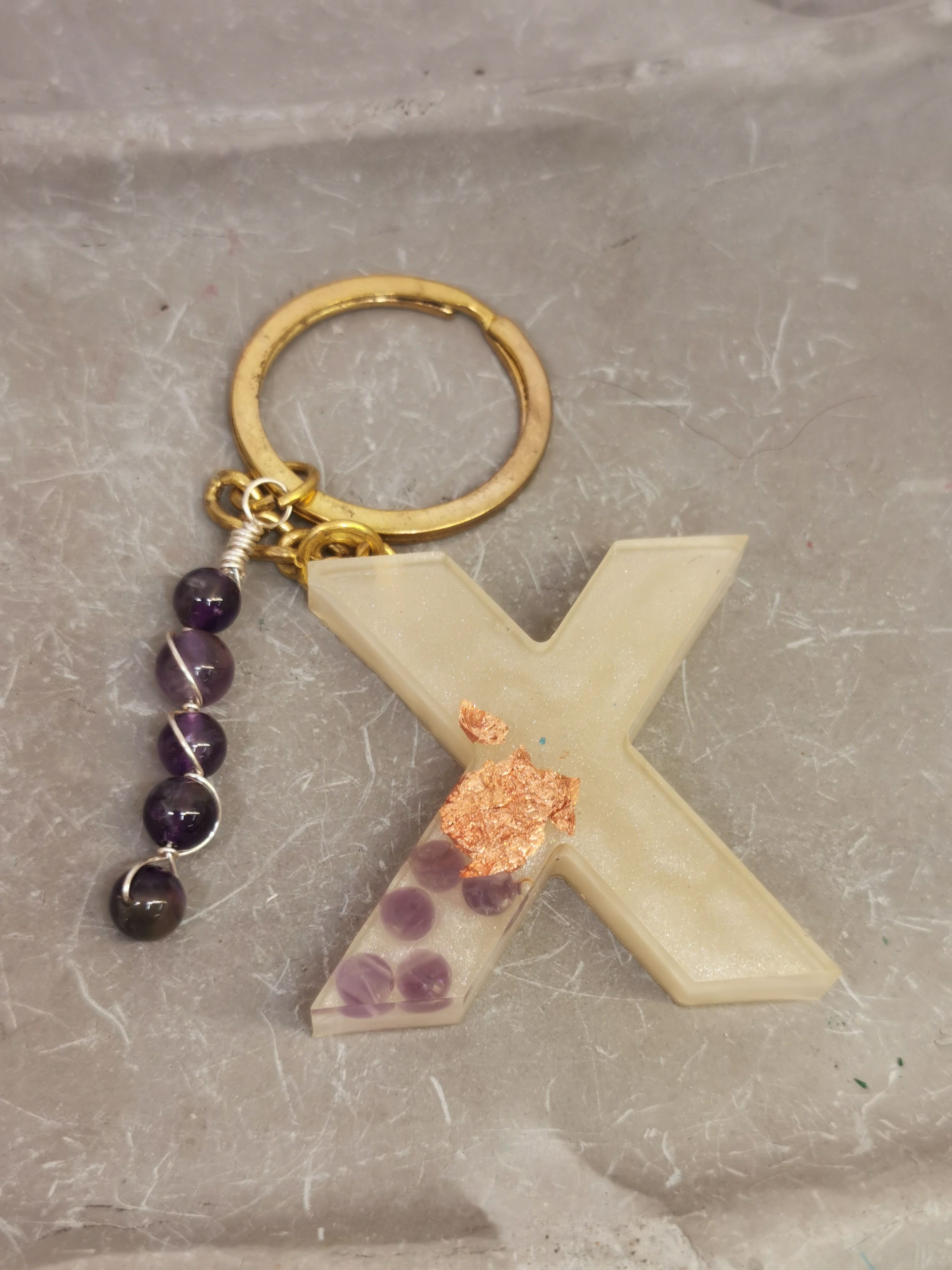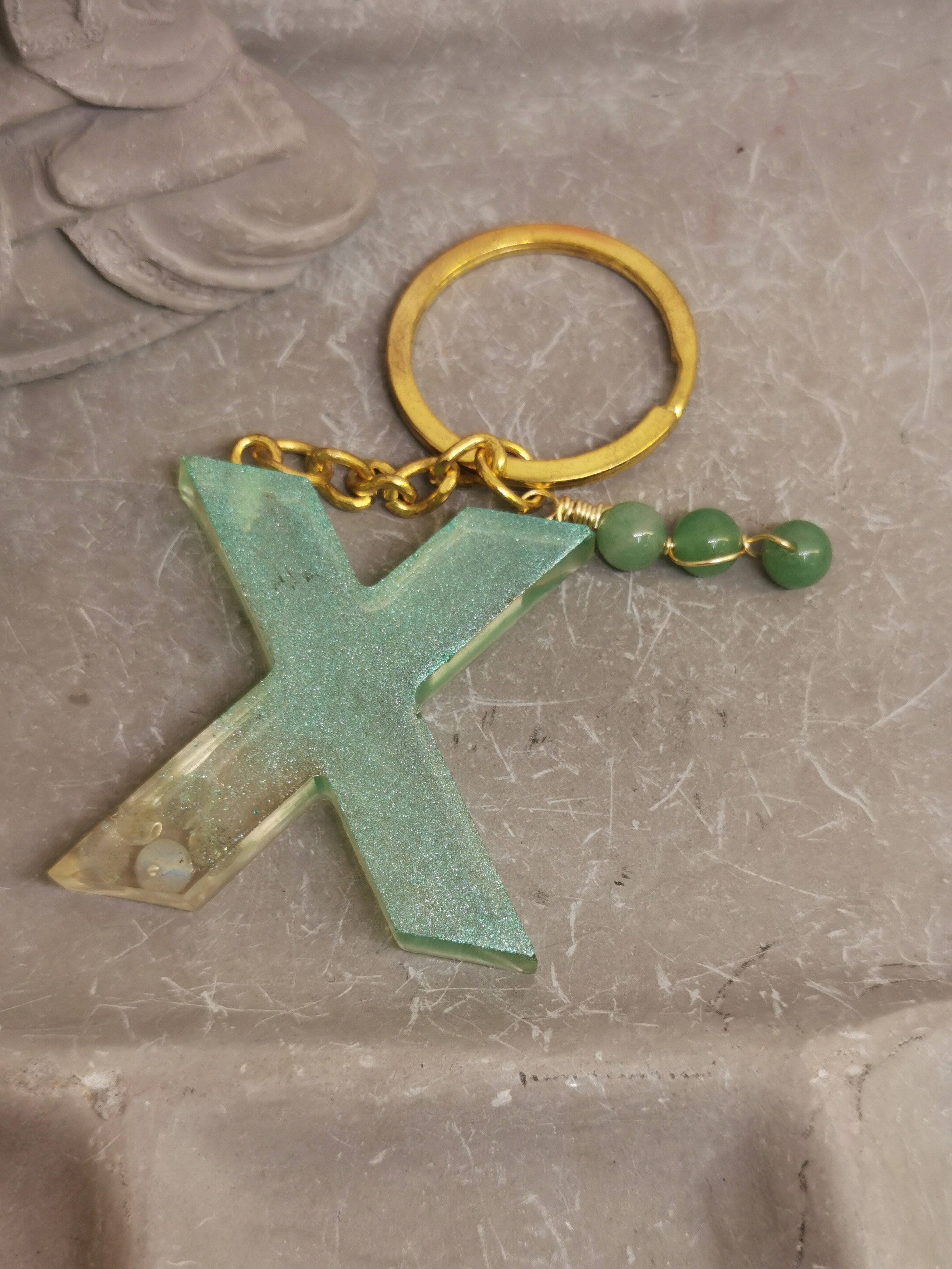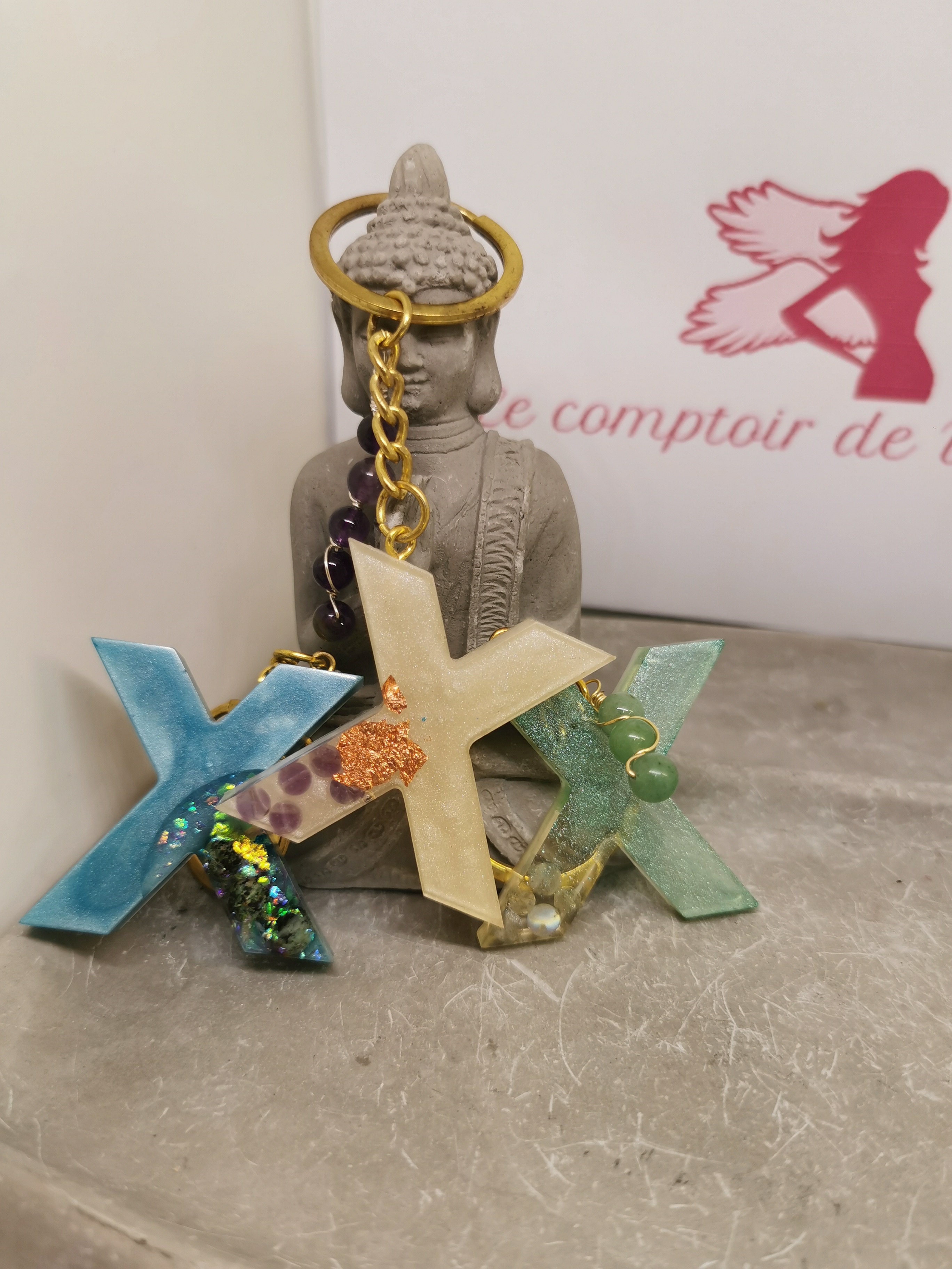 Affirmez votre identité avec ce porte-clé lettre X unique, une création artisanale qui allie élégance, mystère et puissance des pierres naturelles.