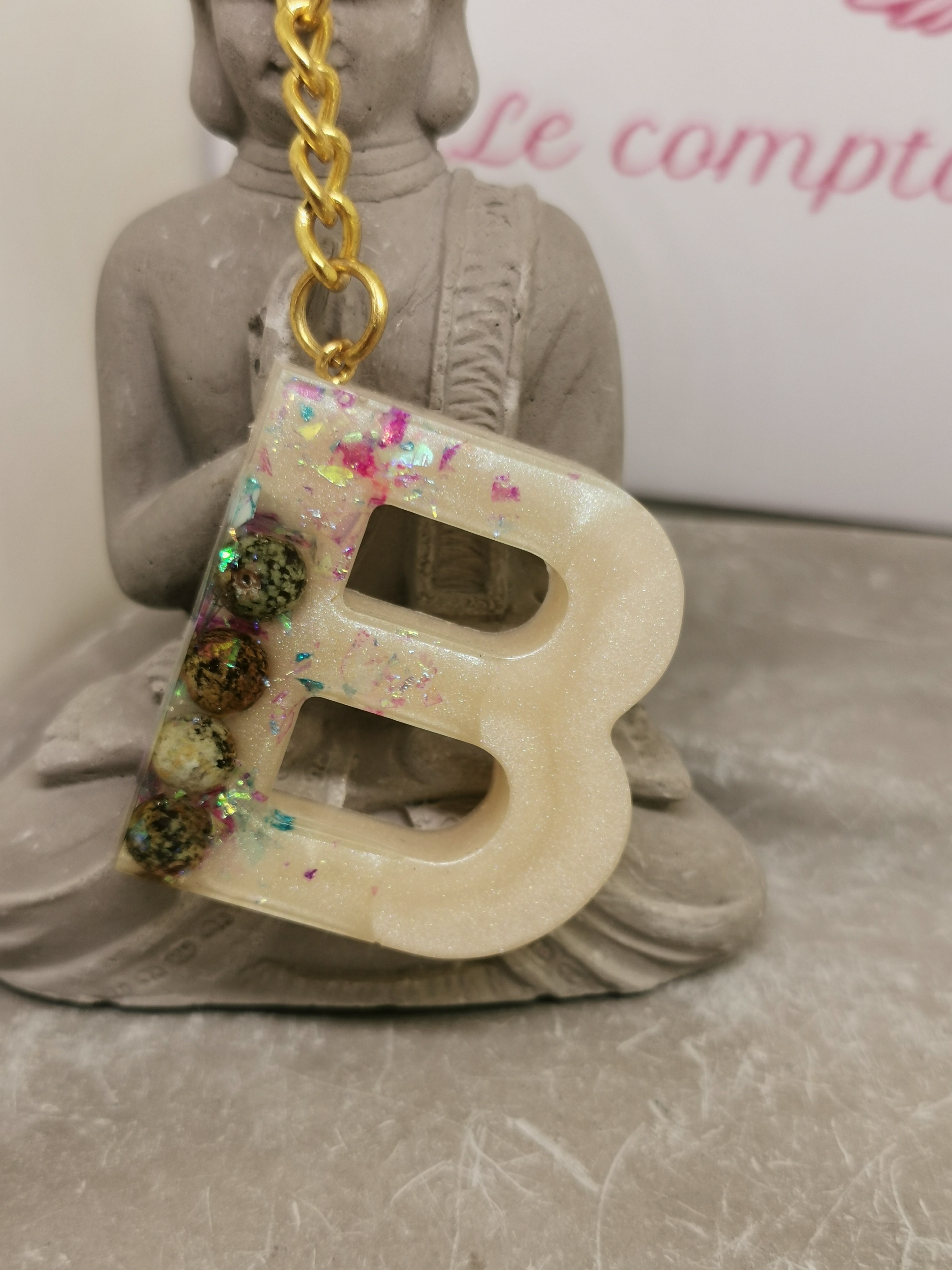 Exprimez votre personnalité avec ce porte-clé lettre B en résine, une création artisanale lumineuse qui allie élégance et énergie protectrice au quotidien.