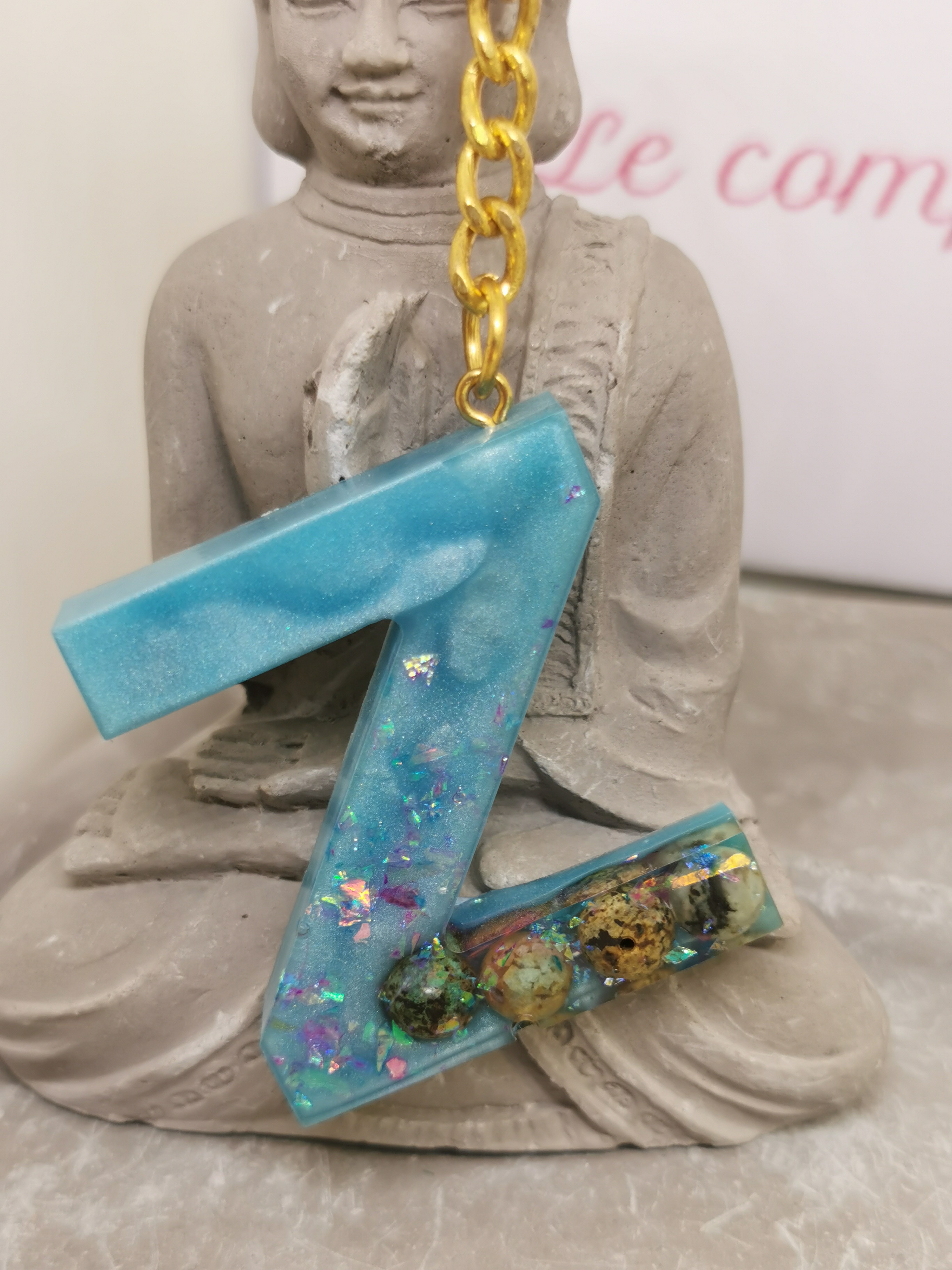 Affirmez votre originalité avec ce porte-clé lettre Z en résine bleue, une création unique qui allie style, énergie protectrice et symbolique forte.