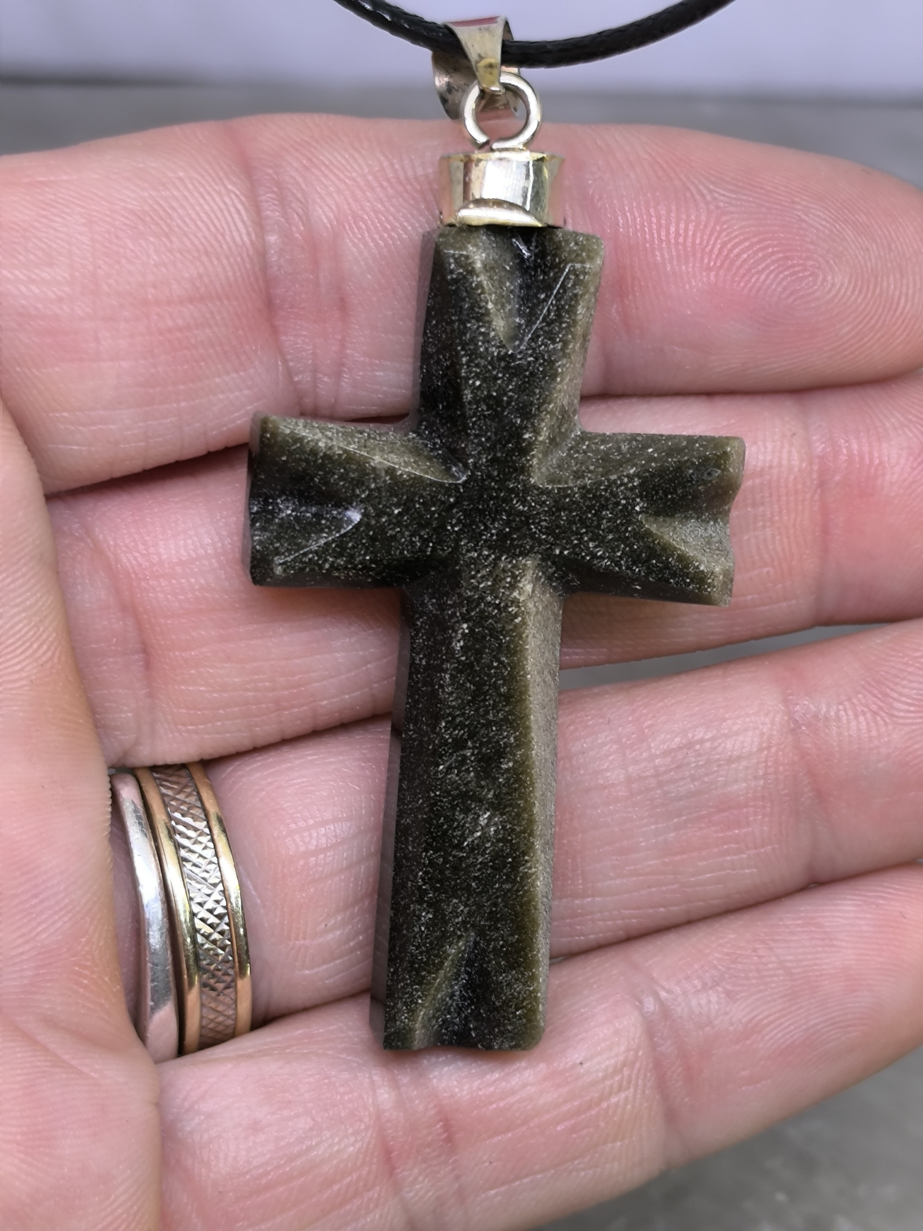 Ce collier en croix en obsidienne dorée naturelle est un bijou à la fois spirituel et protecteur, conçu pour accompagner votre quotidien avec force et élégance. Taillé directement dans la pierre, ce pendentif unique révèle toute la profondeur et les reflets subtils de l’obsidienne dorée, une pierre reconnue en lithothérapie pour ses puissantes propriétés énergétiques.