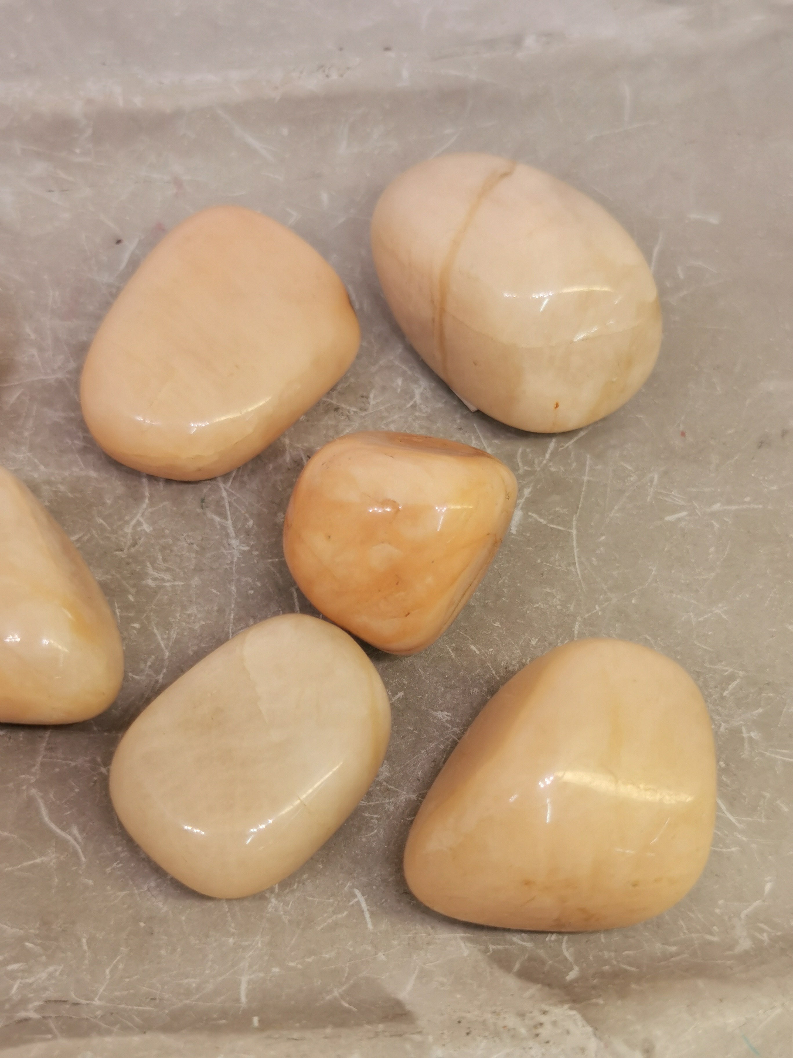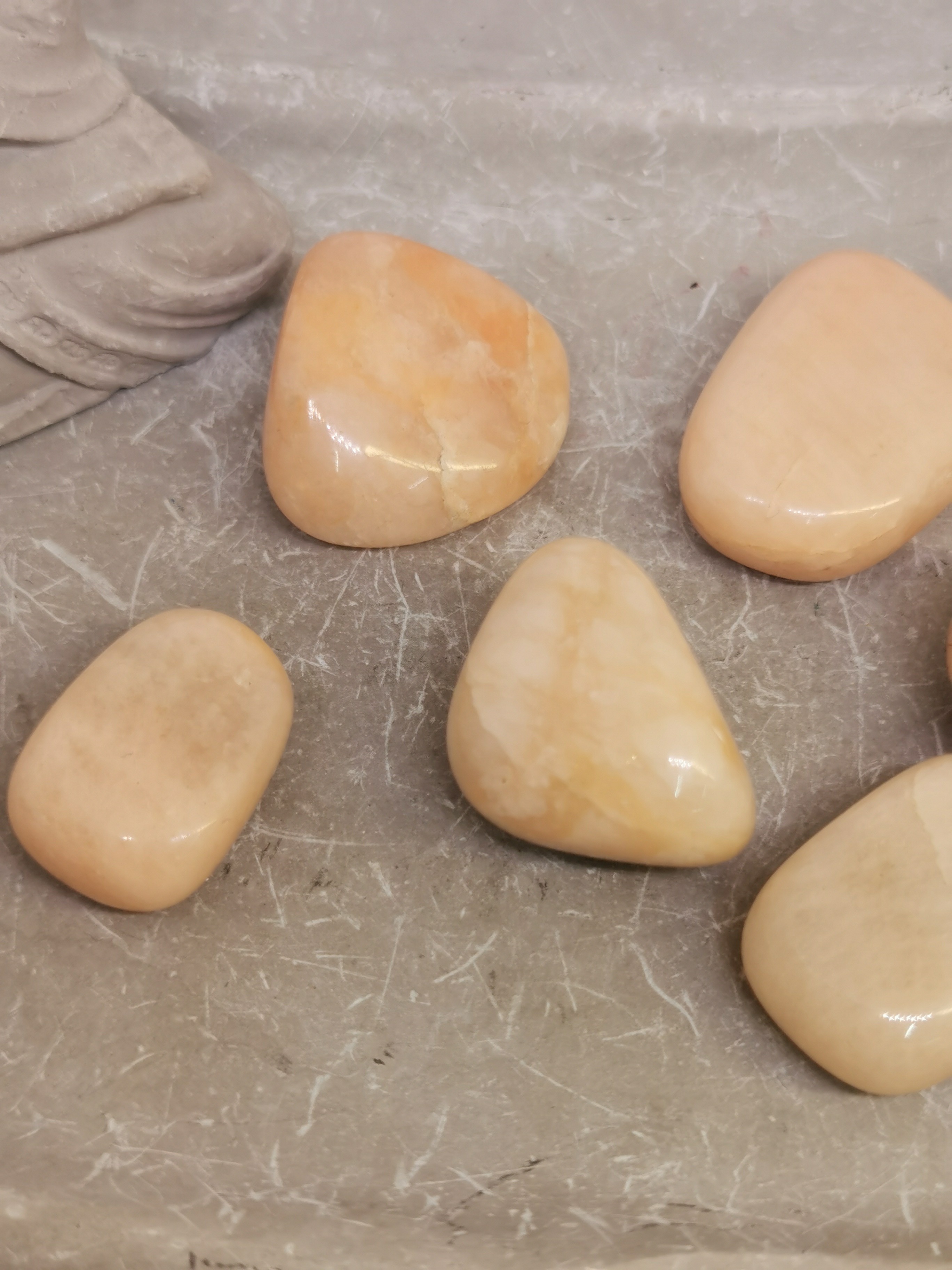 Chaque pierre roulée est unique, avec ses nuances naturelles et ses variations de couleur, ce qui en fait un objet personnel et symbolique.