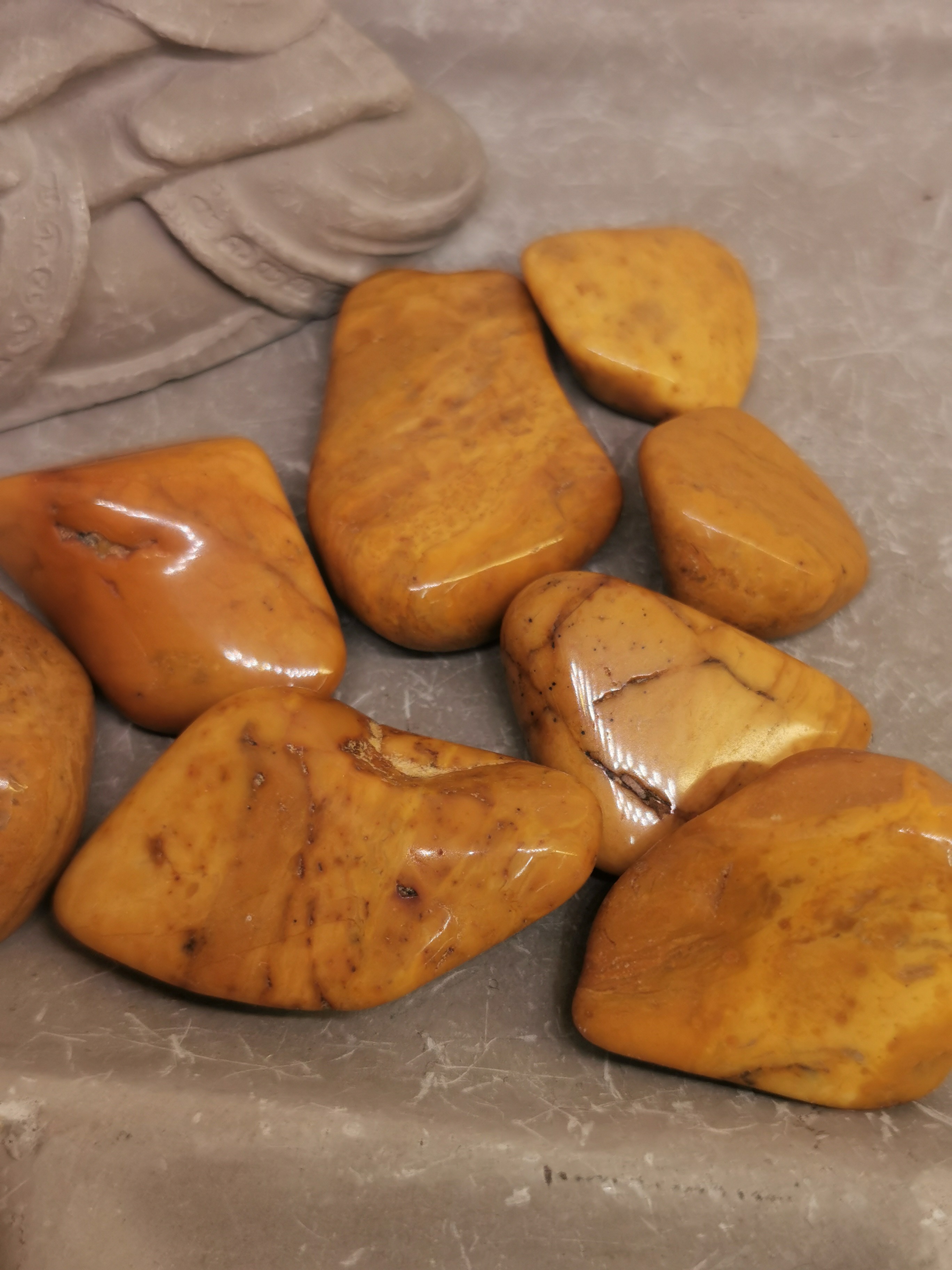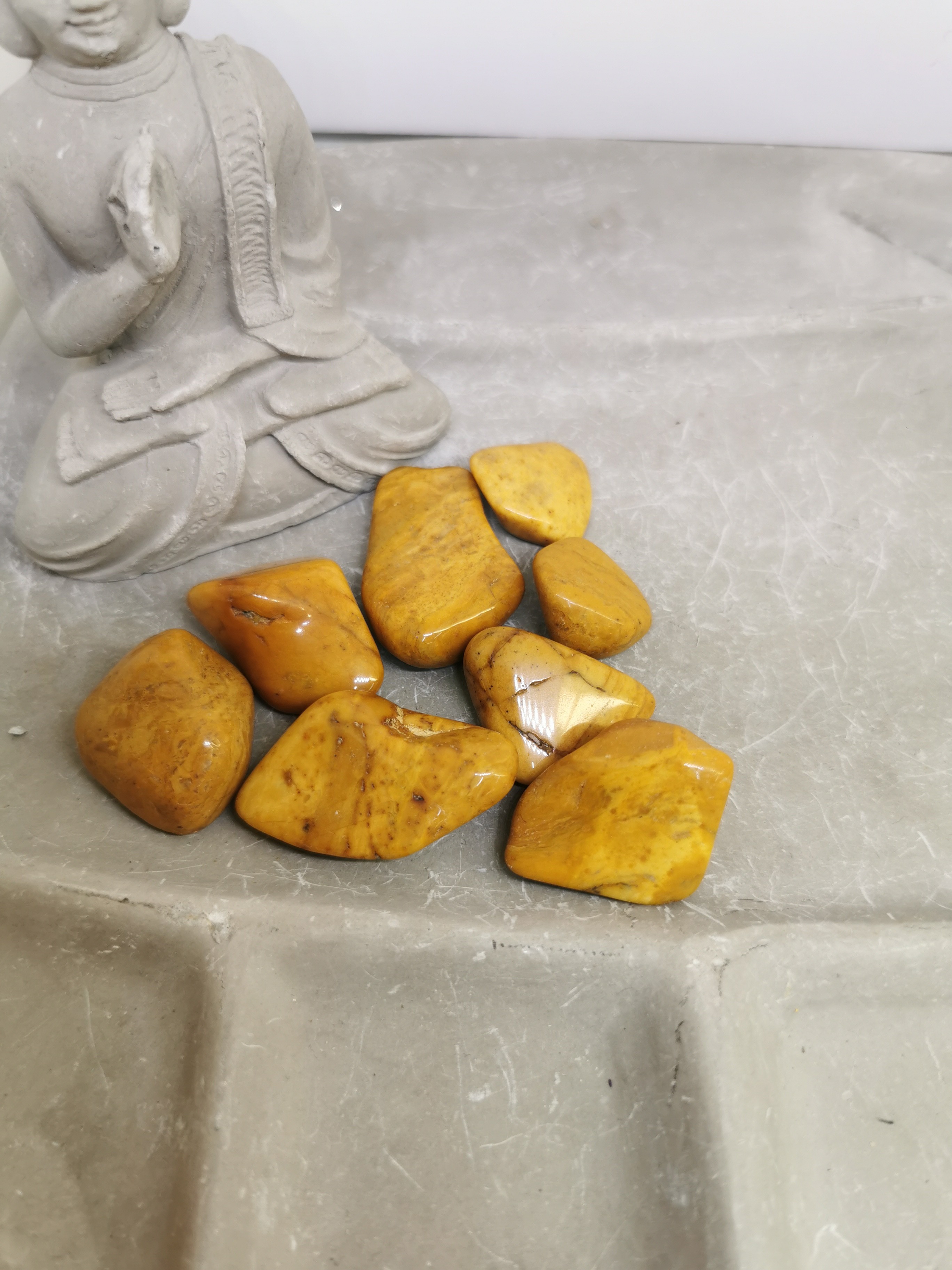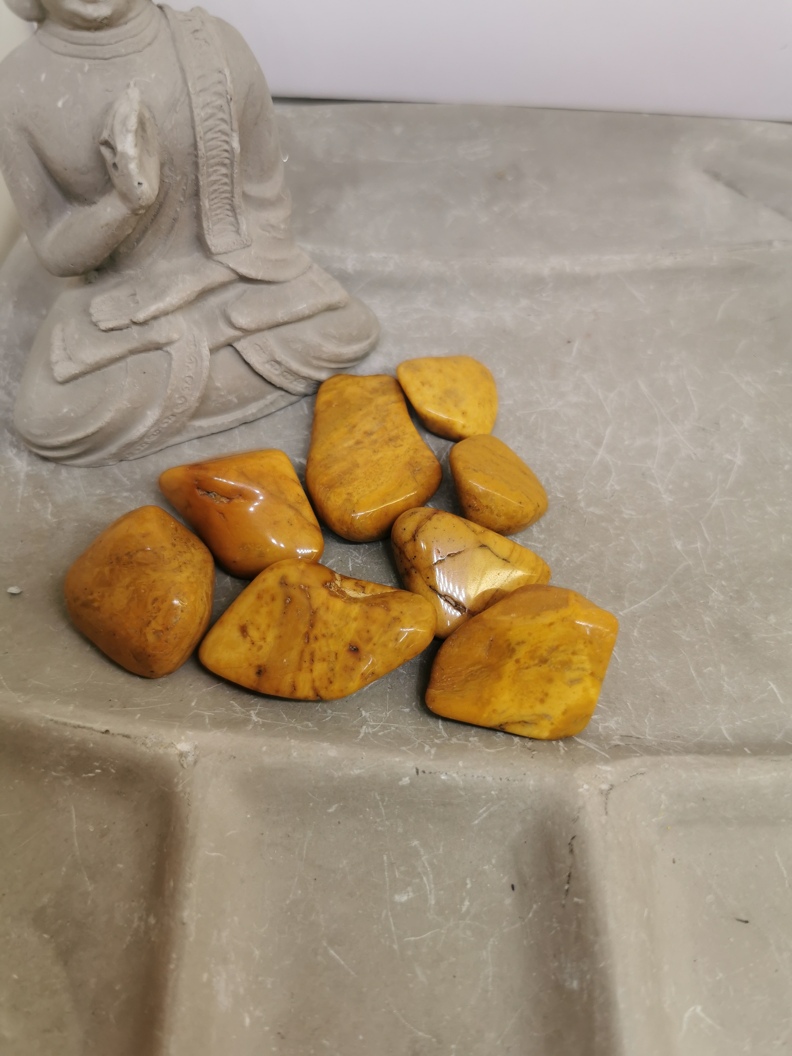 Le jaspe jaune symbolise la lumière intérieure, la force personnelle et la joie de vivre. Il est associé à l’énergie solaire, représentant la chaleur, la vitalité et la confiance.