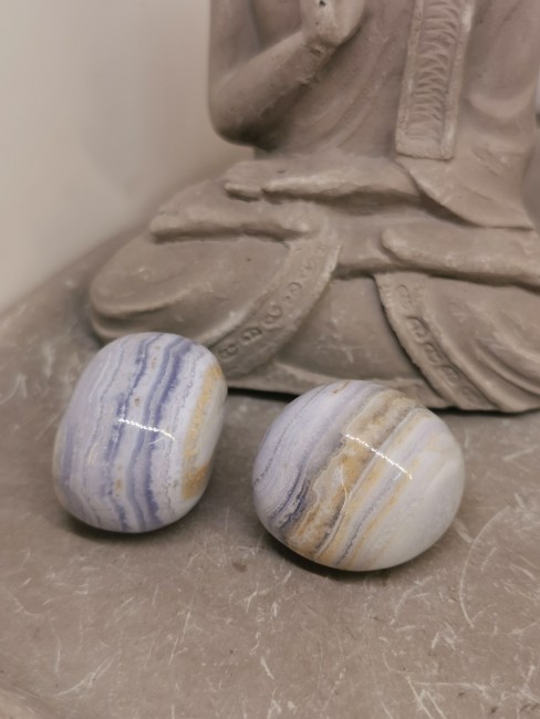 Chaque pierre naturelle roulée est unique, avec ses nuances et ses légères variations, ce qui en fait un objet personnel, esthétique et symbolique.