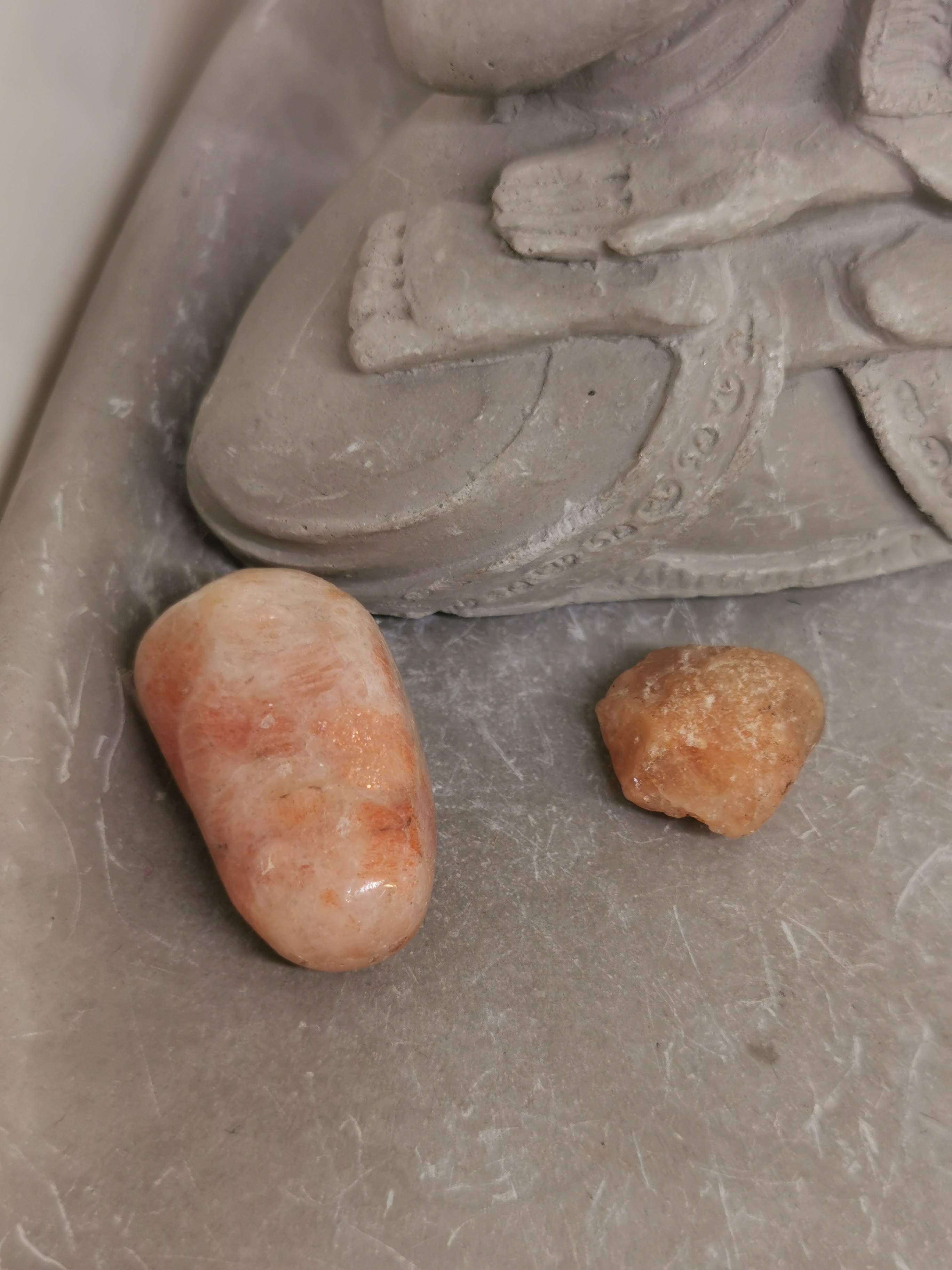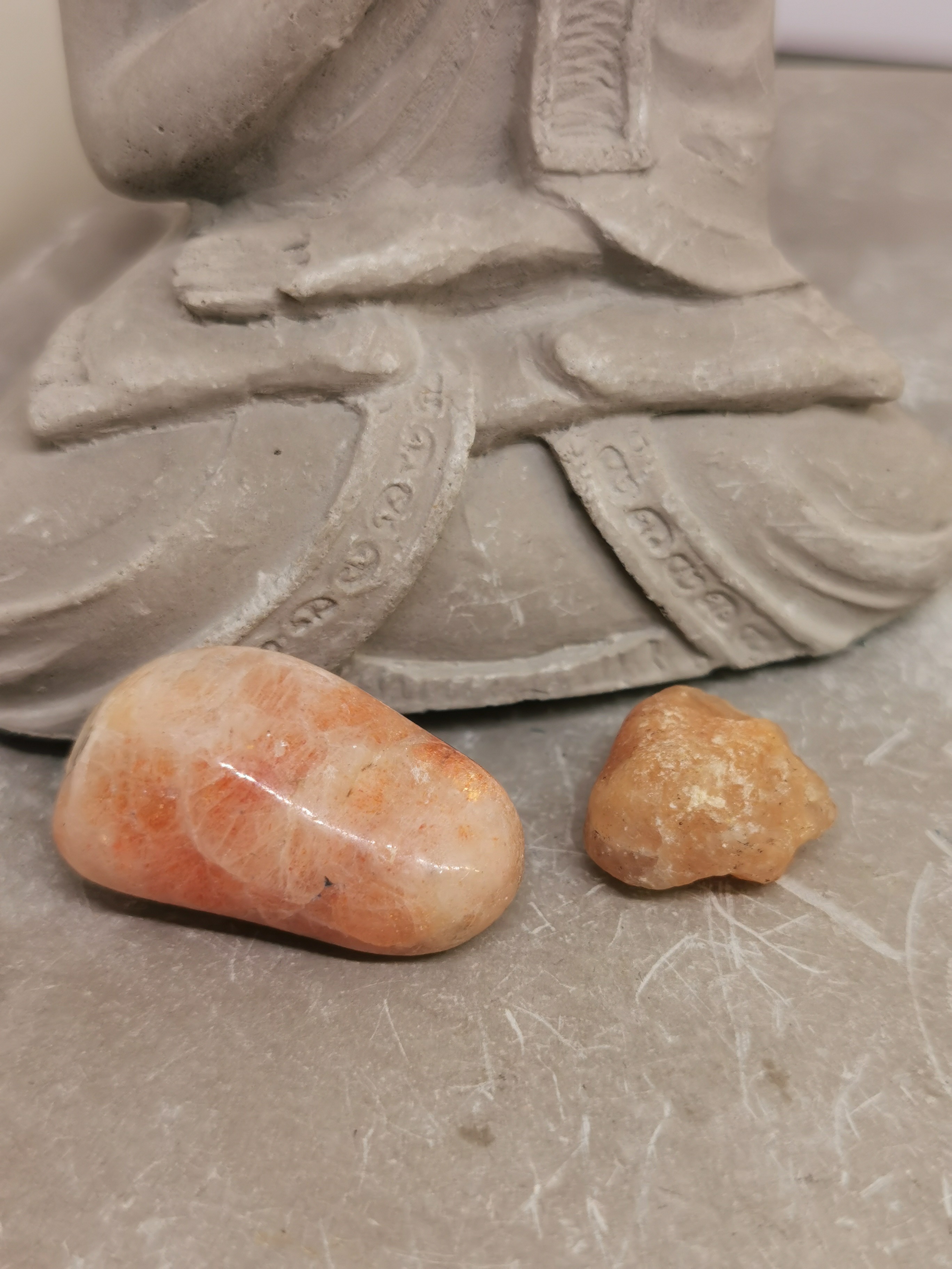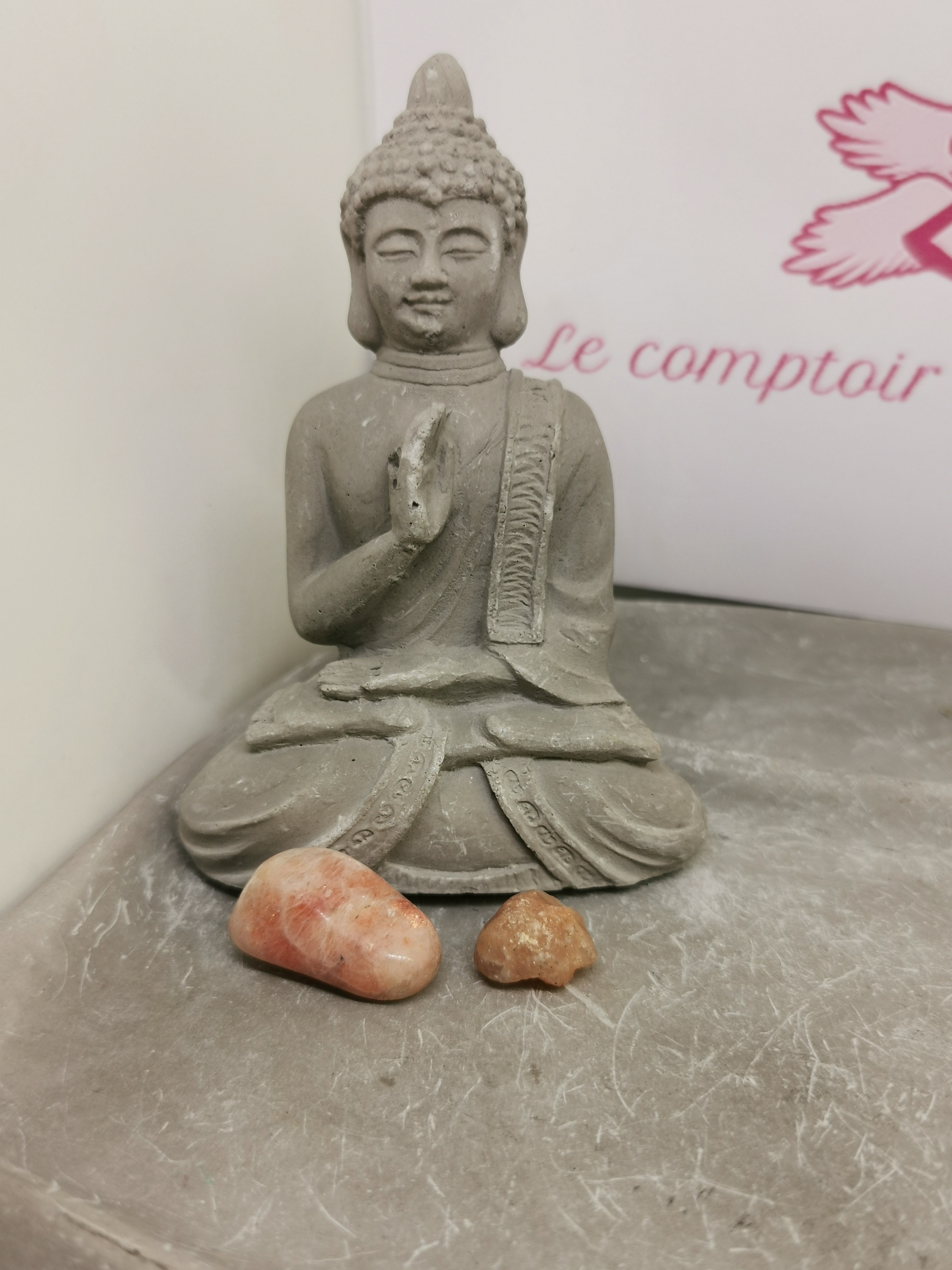 Portée sur soi ou utilisée en méditation, cette pierre roulée en pierre de soleil aide à :