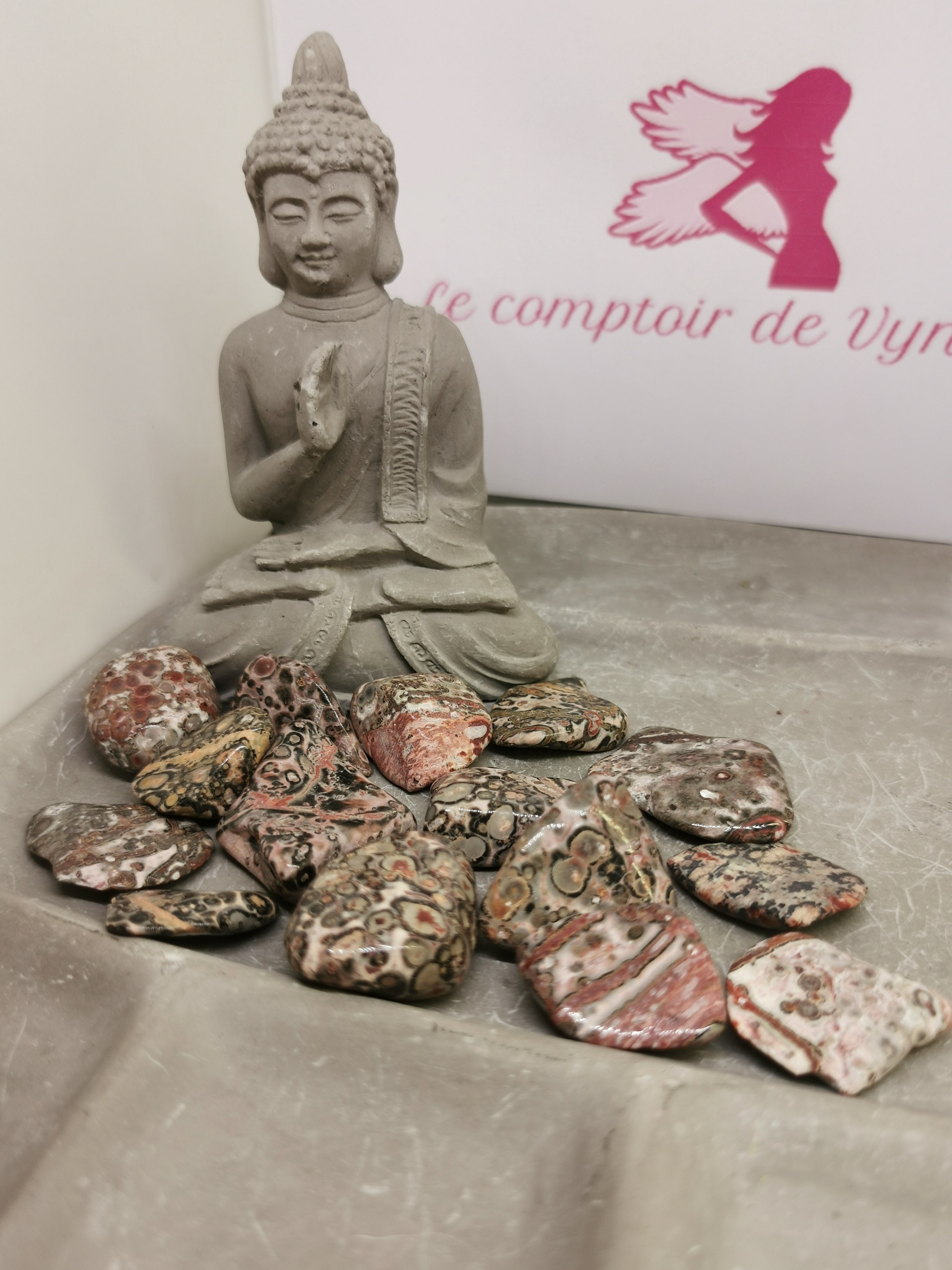 Chaque pierre naturelle jaspe léopard est unique, avec ses motifs distinctifs, ce qui en fait une pierre énergétique à la fois esthétique et profondément symbolique.