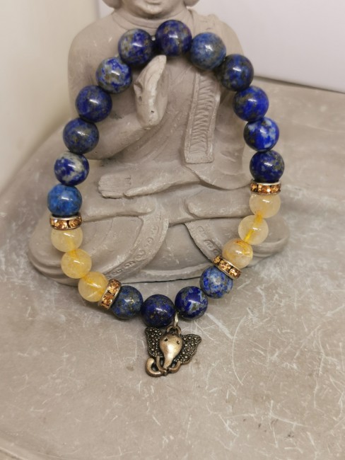 RÉFÉRENCE : Bracelet Lapis Lazuli & Citrine avec Tête d’Éléphant 8 mm – Sagesse et Abondance