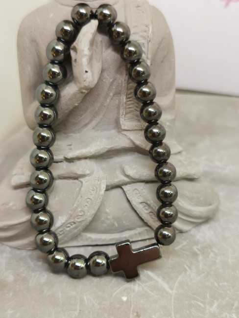 Bracelet Hématite avec Croix en Hématite 6 mm